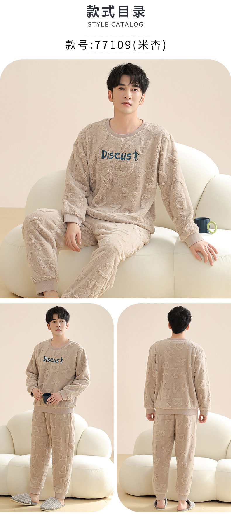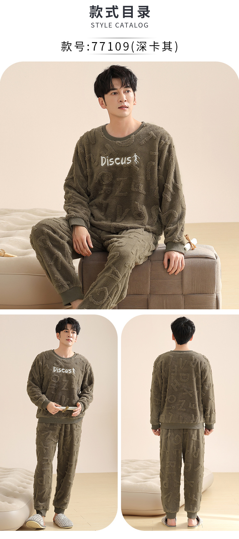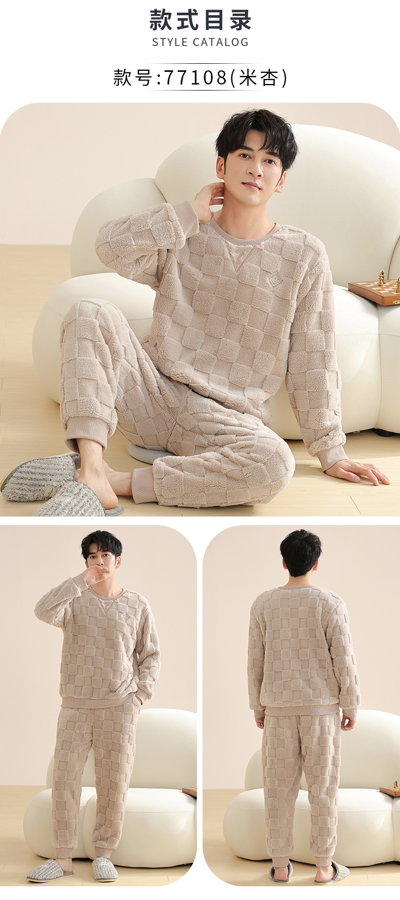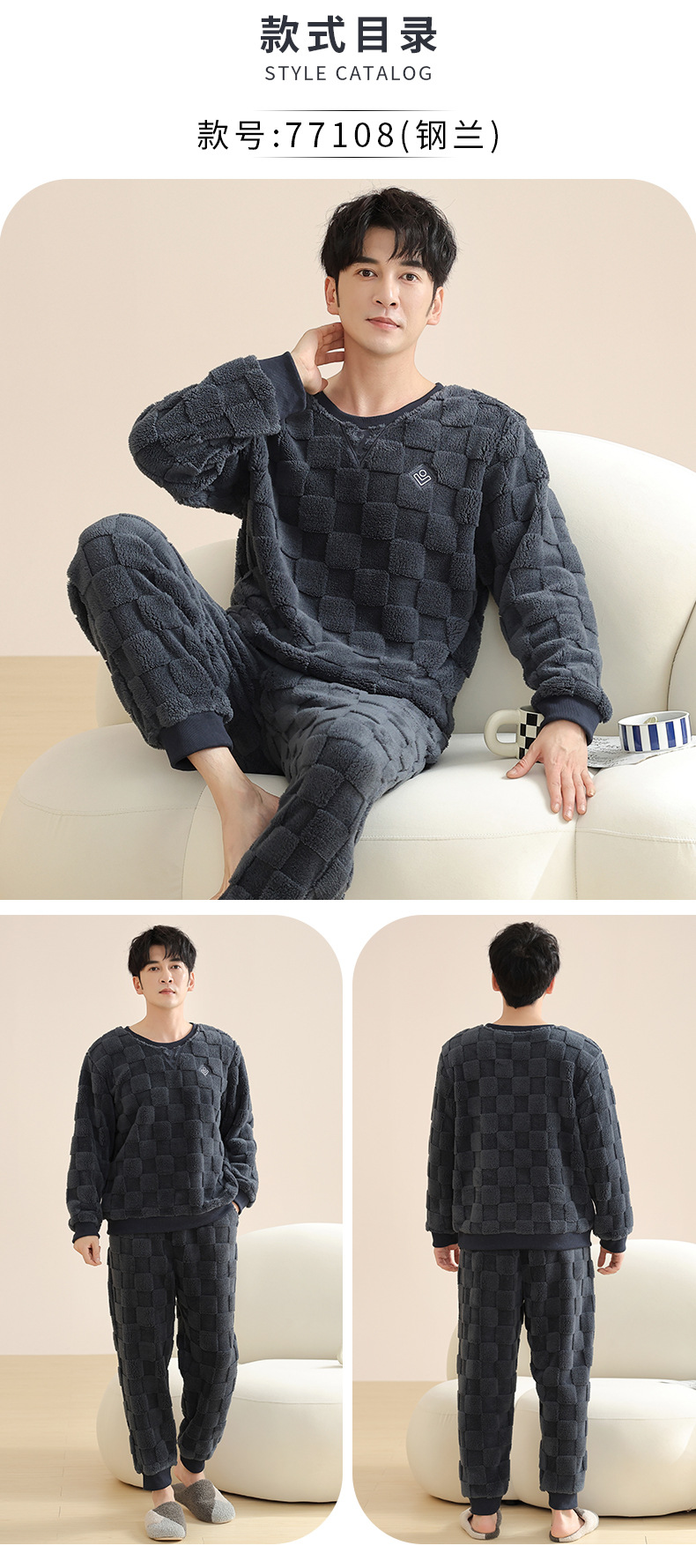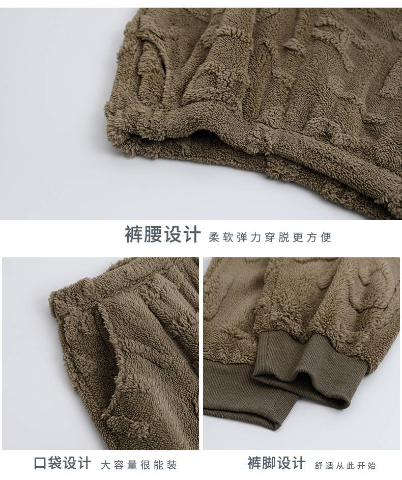 Longshijia 잠옷 남자 겨울 두꺼운 플란넬 플러시 자카드 간단한 캐주얼 라운드 넥 풀오버 세트스토어 가기