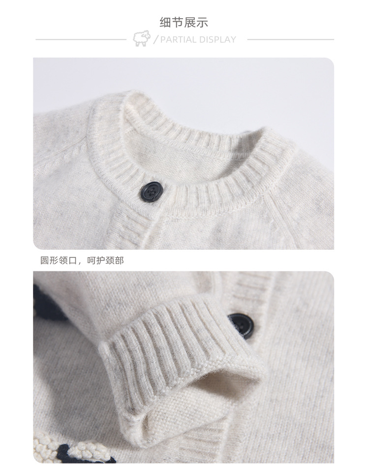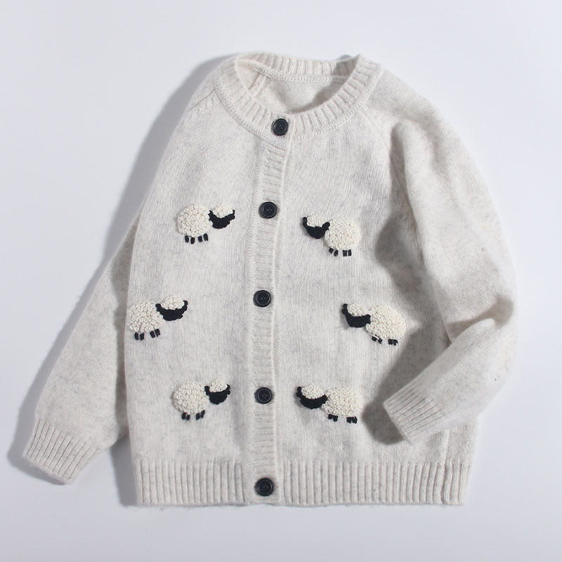 램 점프 2023 가을과 겨울 새로운 라운드 넥 어린이 캐시미어 스웨터 귀여운 만화 가디건 울 재킷 모든 일치스토어 가기
