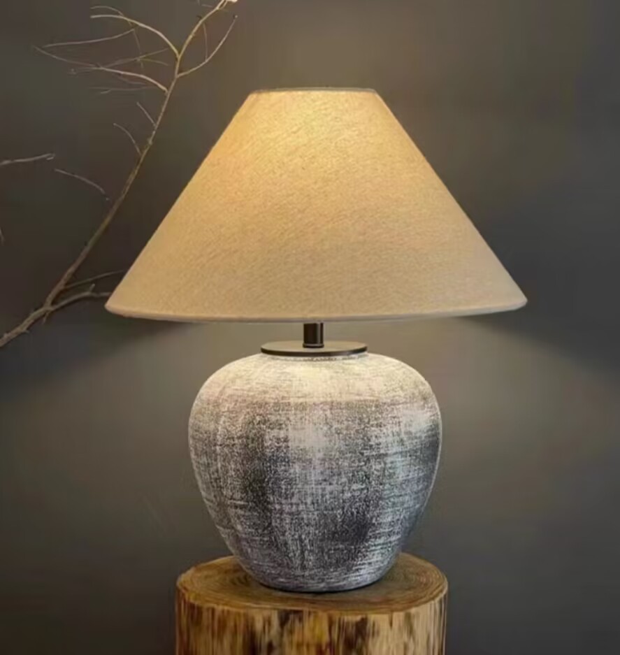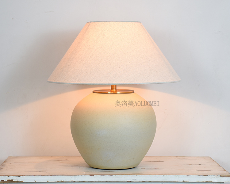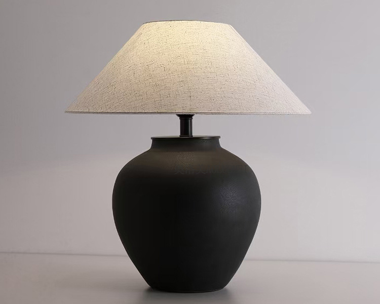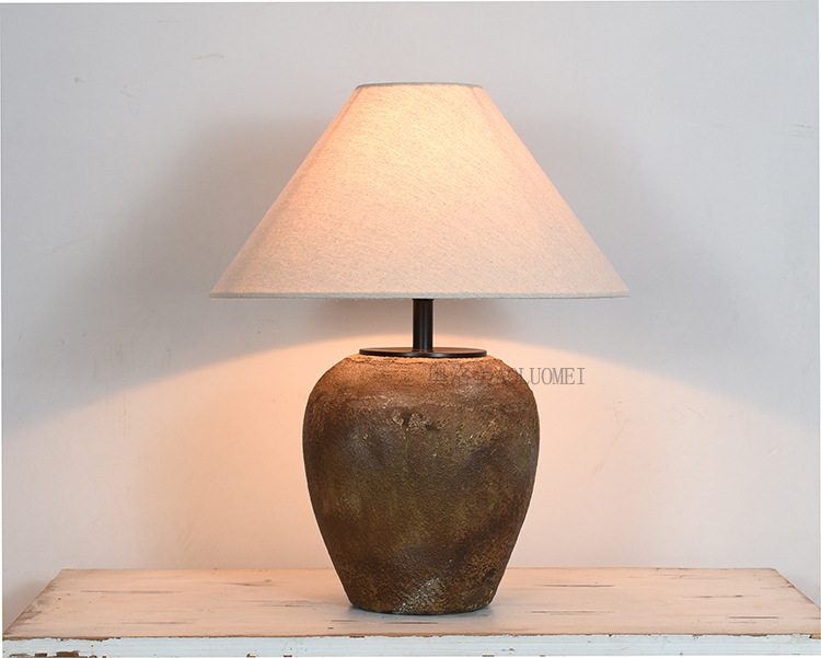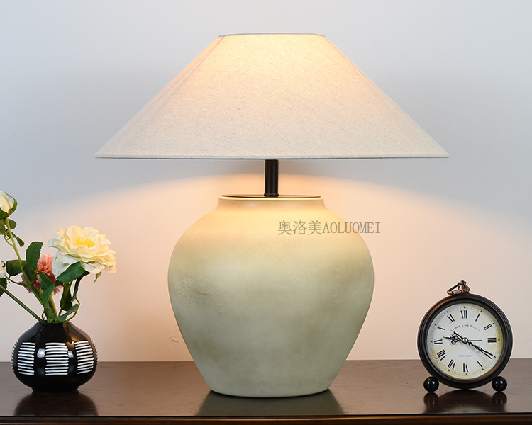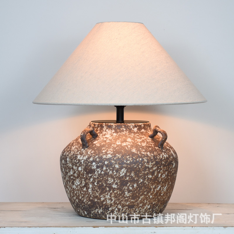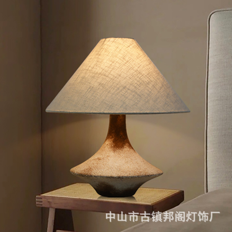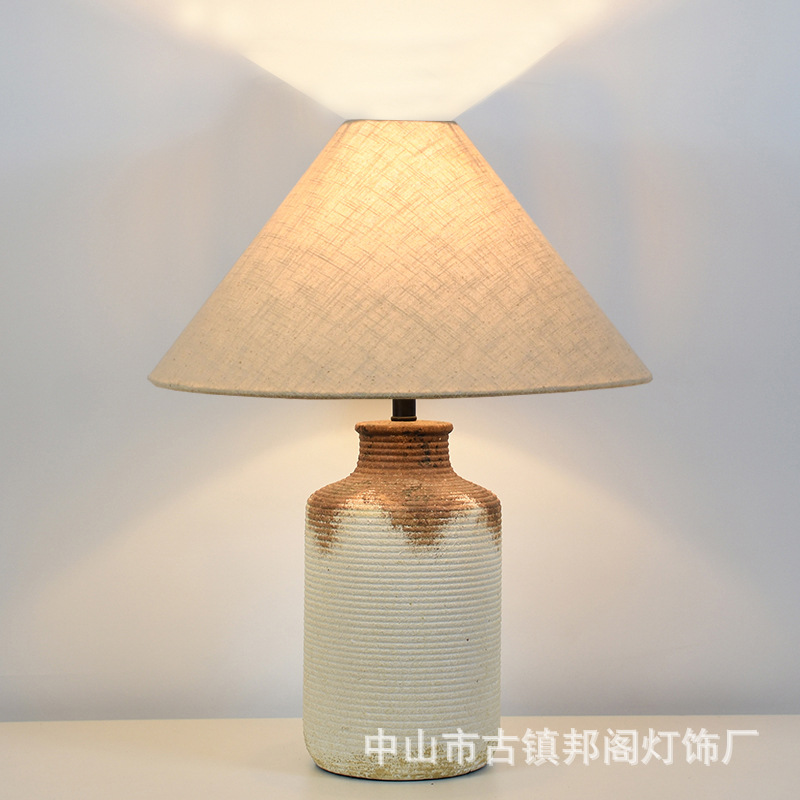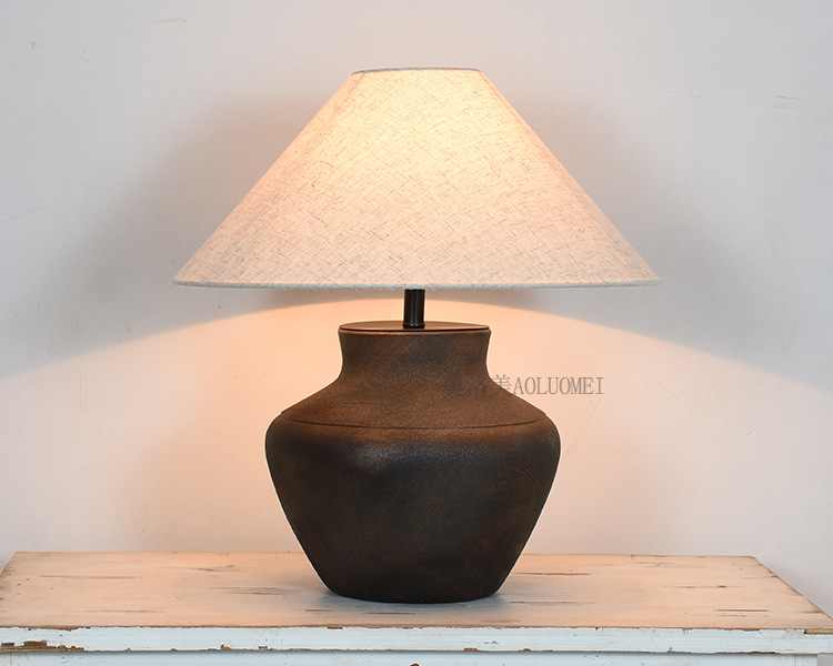 일본 스타일의 조용한 스타일 지구 도자기 테이블 램프 중국 거친 세라믹 거실 호텔 홈스테이 디자이너 침실 램프 장식
