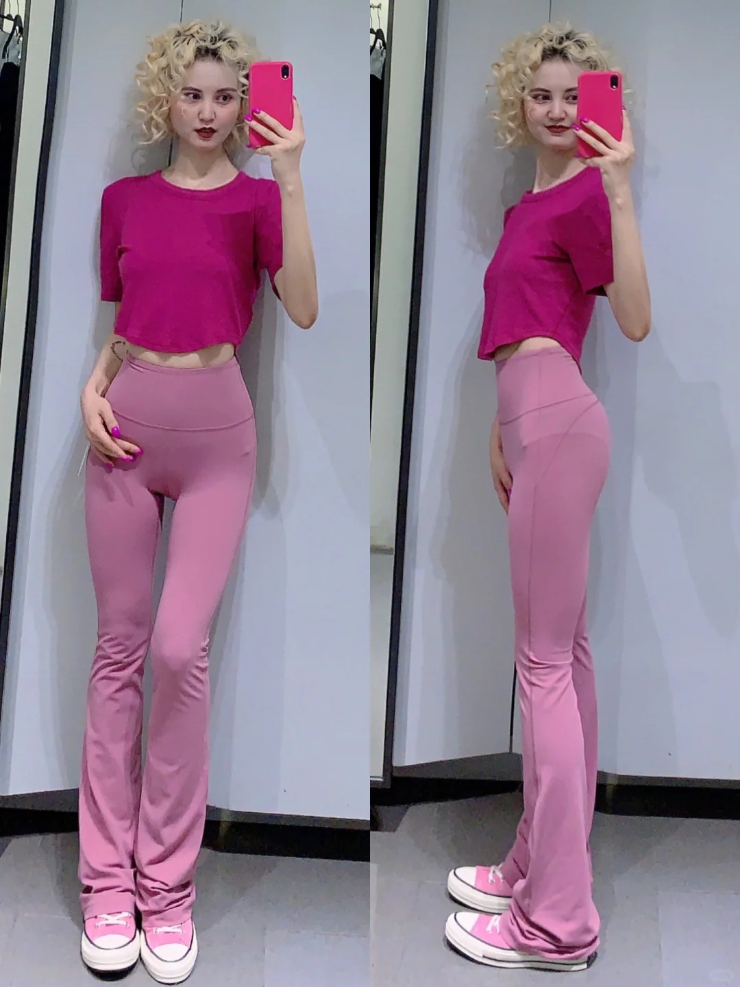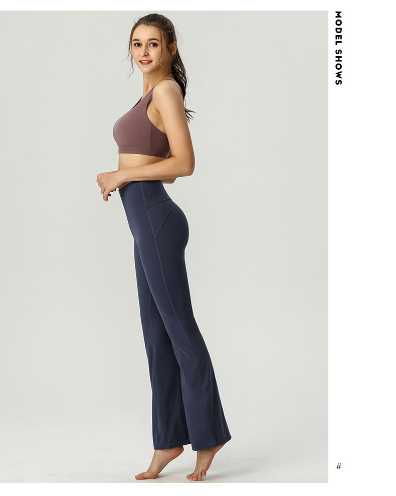 Uarun 새로운 하이 웨이스트 요가 바지 여성용 고탄성 캐주얼 슬리밍 알몸 감각 스포츠 피트니스 속건 플레어 팬츠