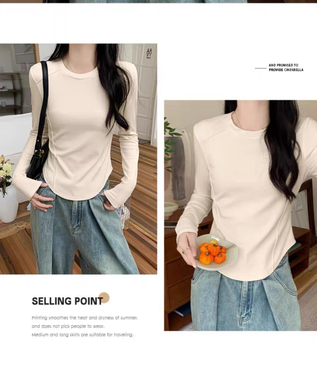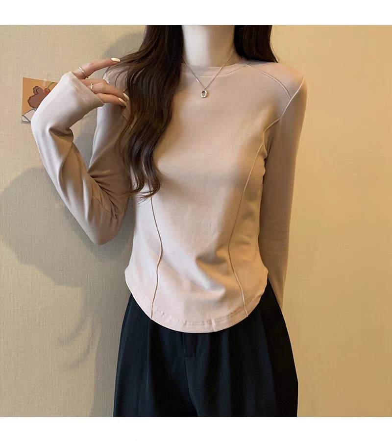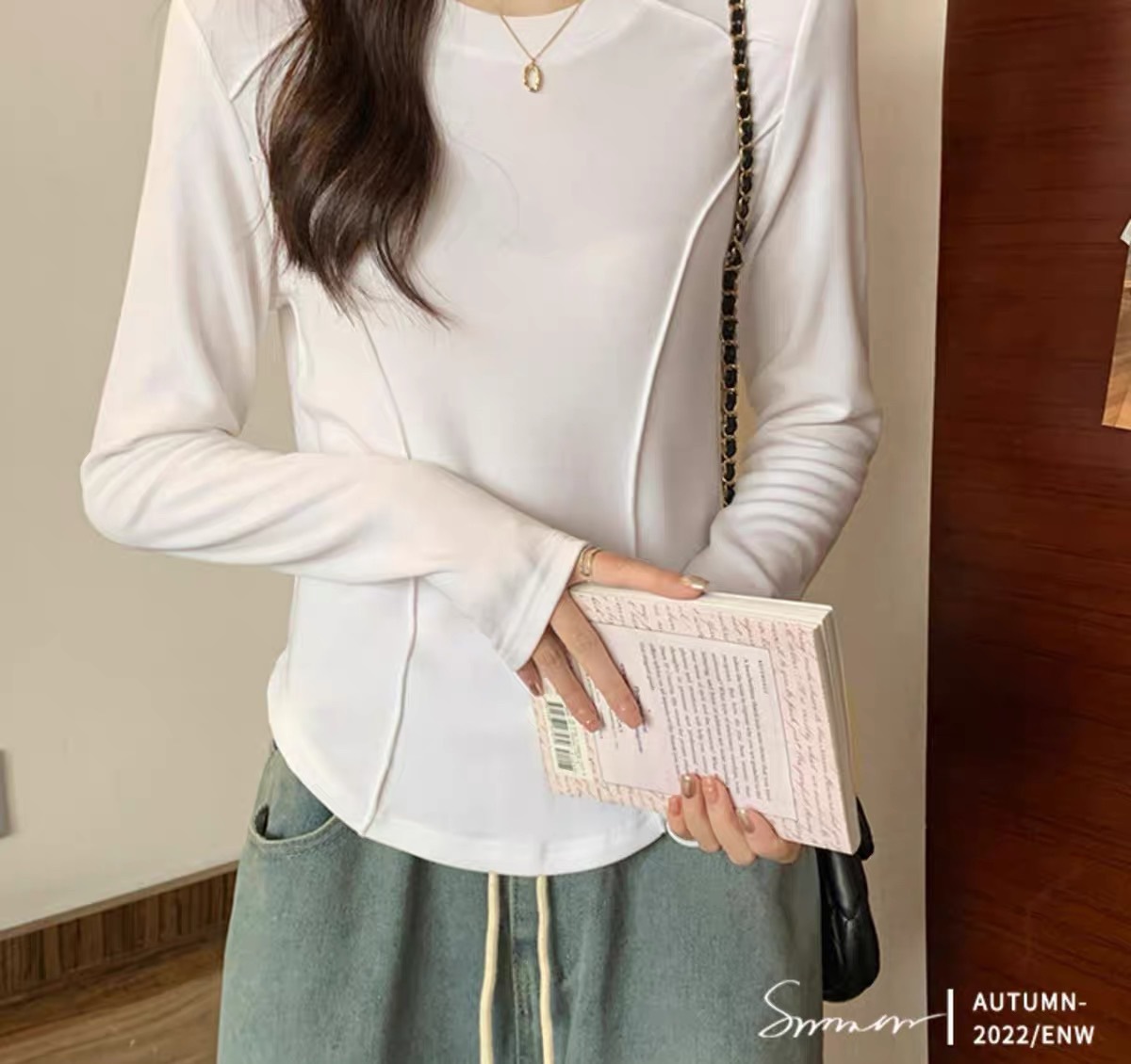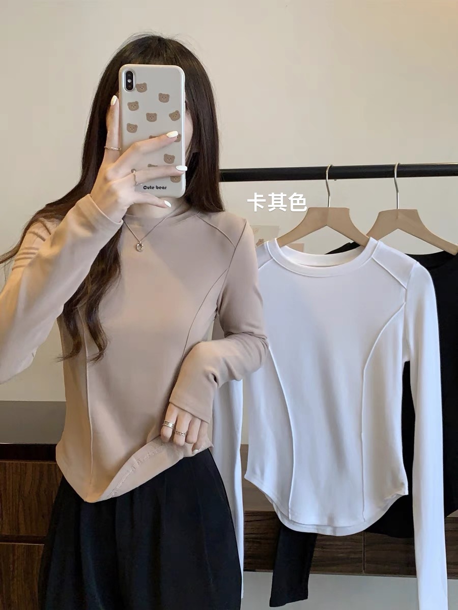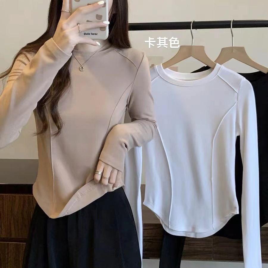 2023 가을 겨울 여성용 피쉬테일 이너웨어, 슬림핏 긴팔 숏 스타일 피쉬본 이너탑, 하프 터틀넥스토어 가기