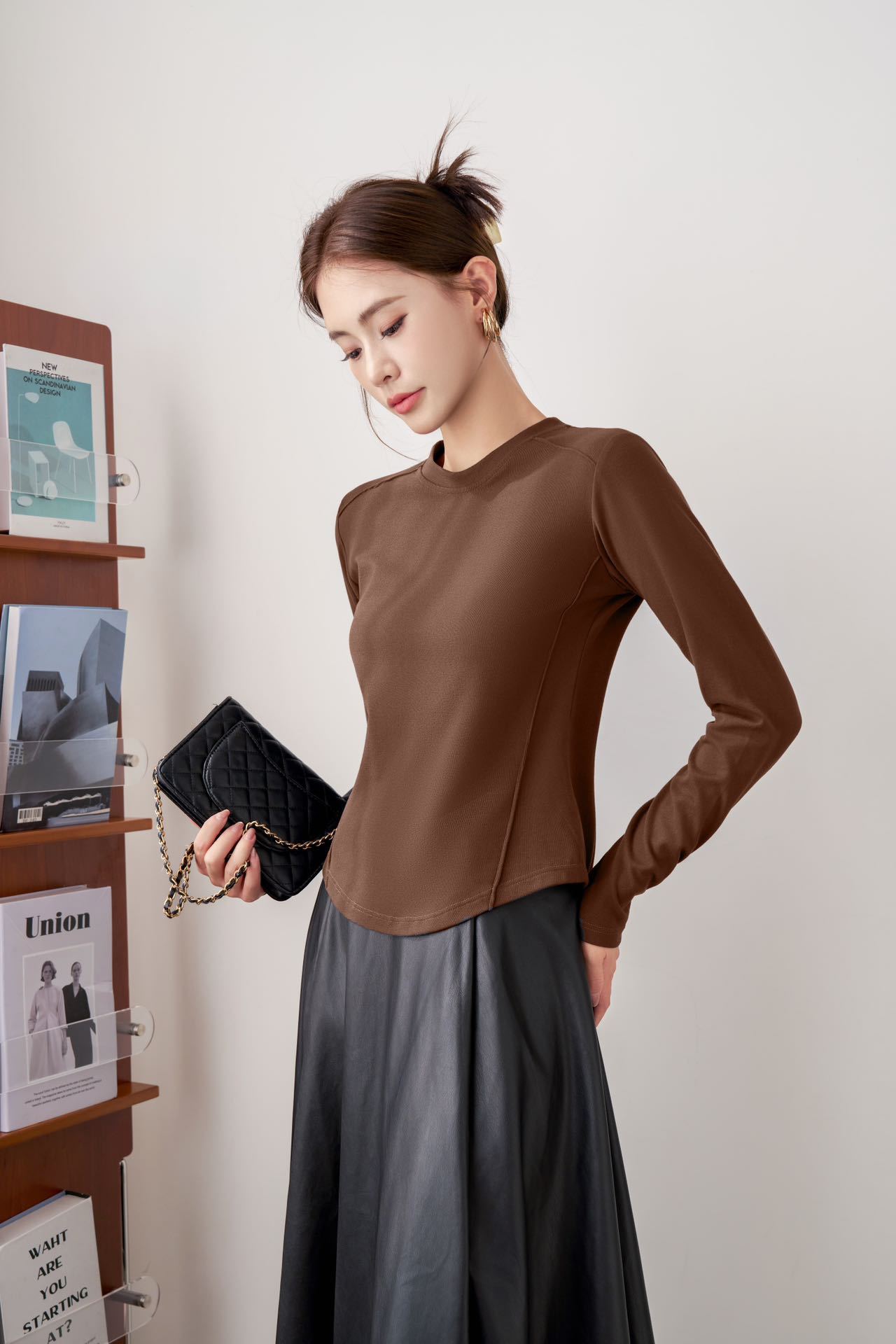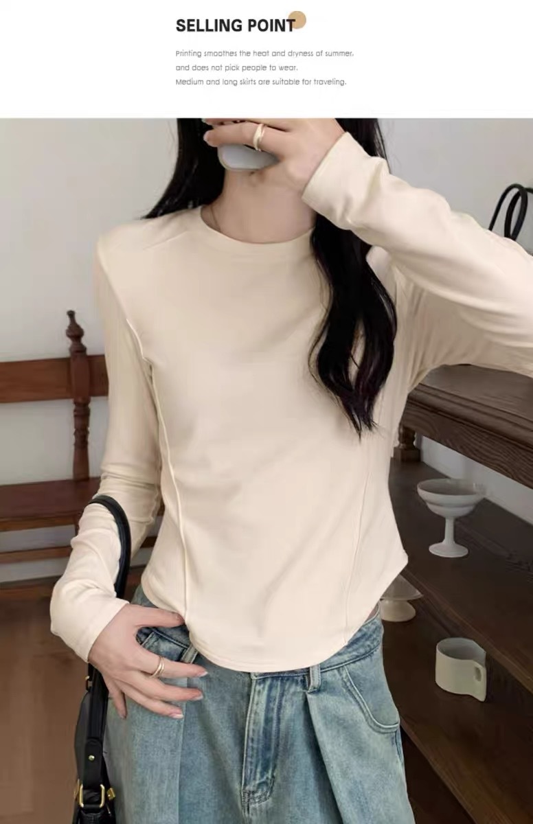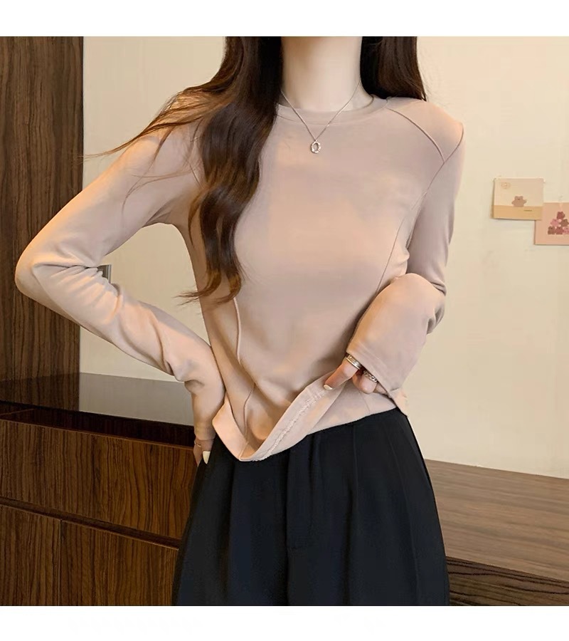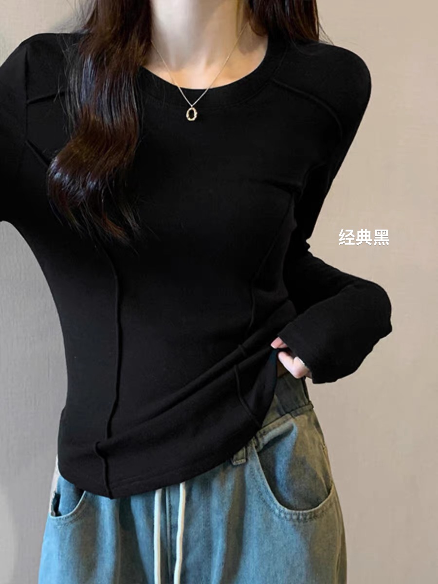 2023 가을 겨울 여성용 피쉬테일 이너웨어, 슬림핏 긴팔 숏 스타일 피쉬본 이너탑, 하프 터틀넥스토어 가기