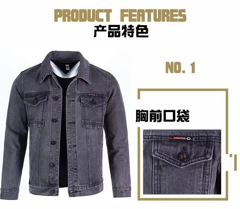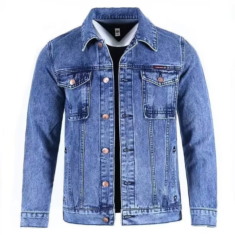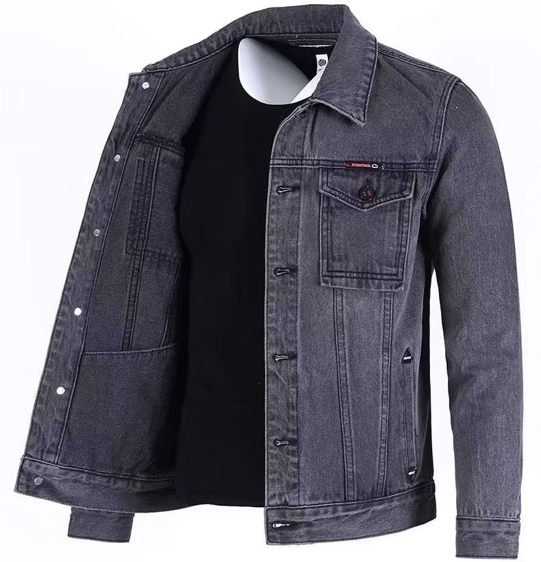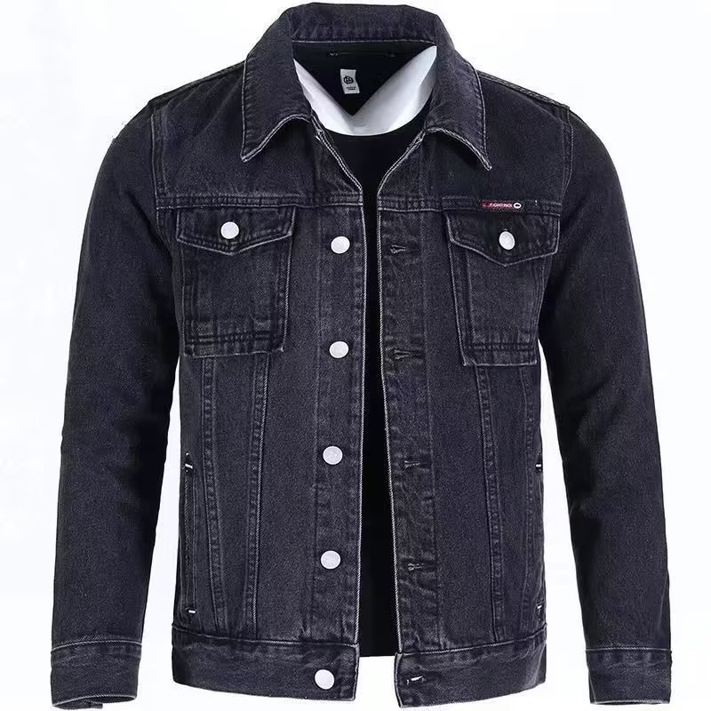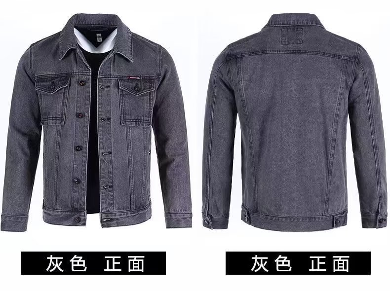 단색 데님 재킷 남자의 느슨한 플러스 사이즈 재킷 2023 가을 새로운 남자의 회색 캐주얼 데님 남성 의류스토어 가기