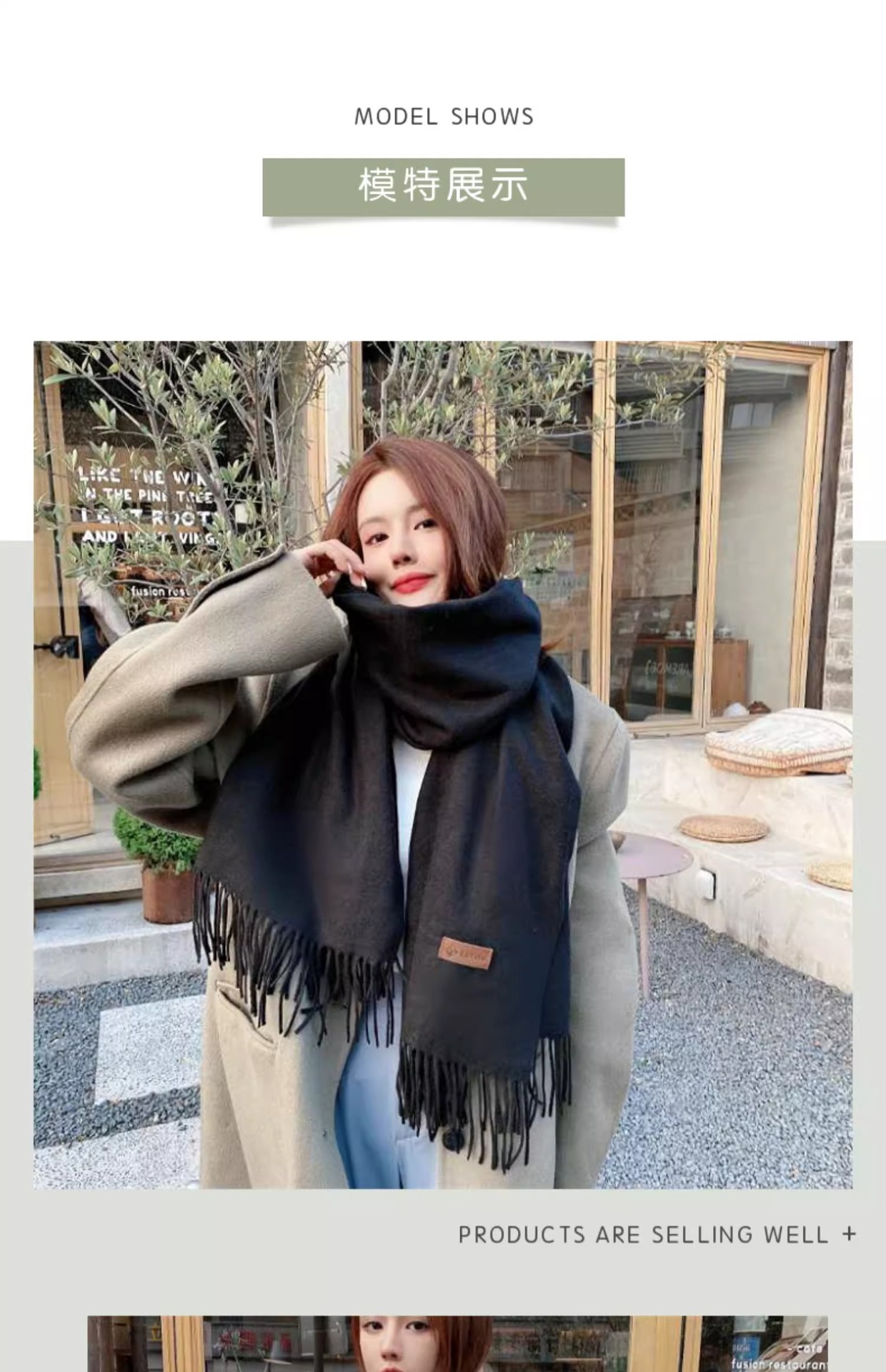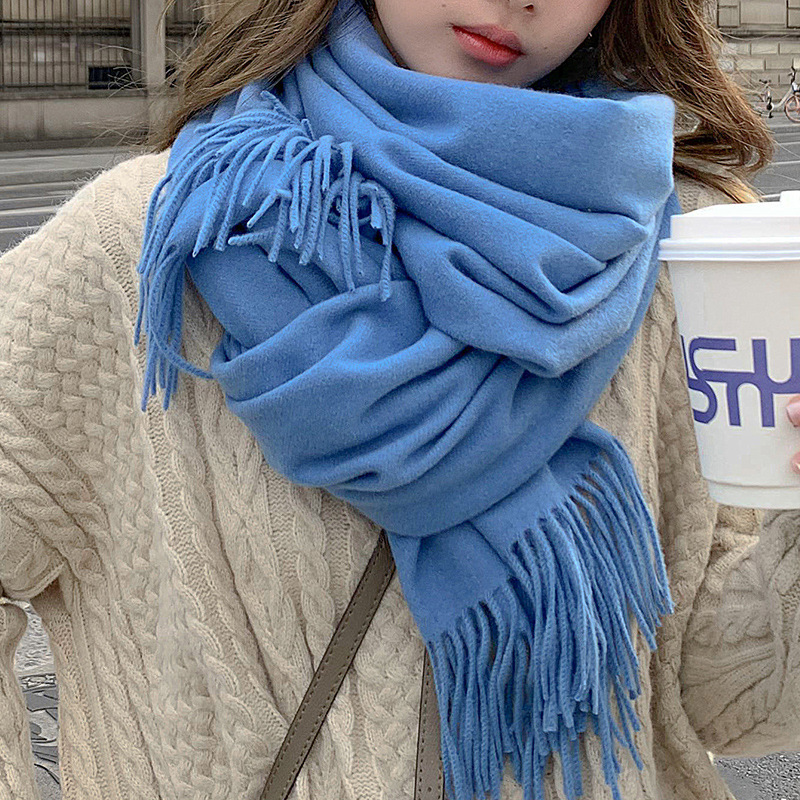겨울 스카프 한국식 단색 스카프 숄 이중 목적 여성용 겨울 두꺼운 따뜻한 모조 캐시미어 스카프 학생 모든 매치스토어 가기
