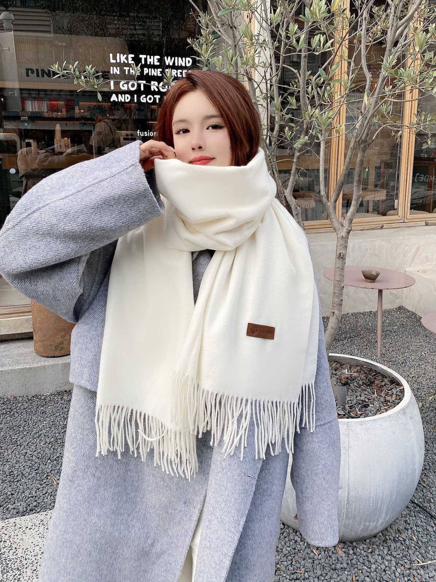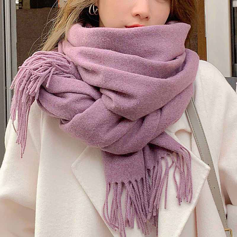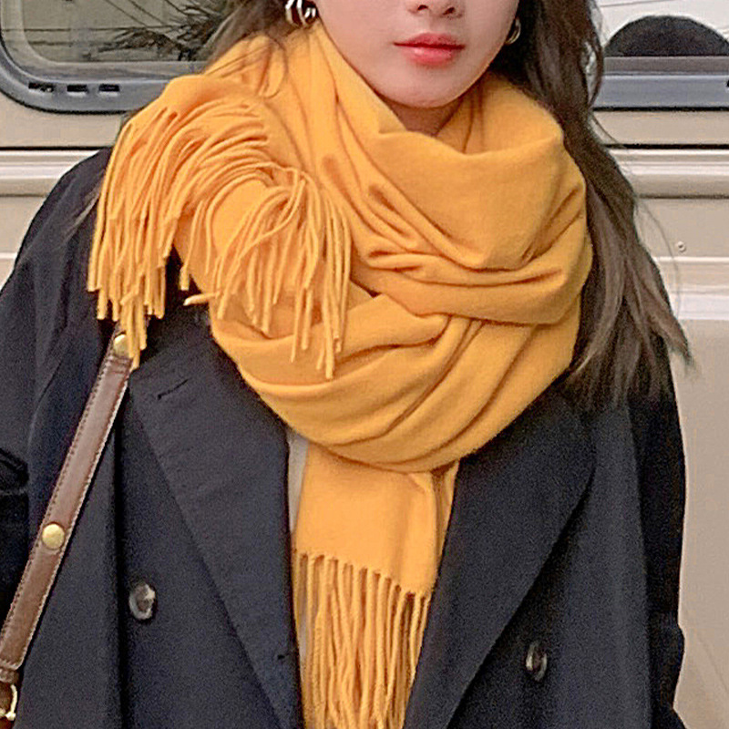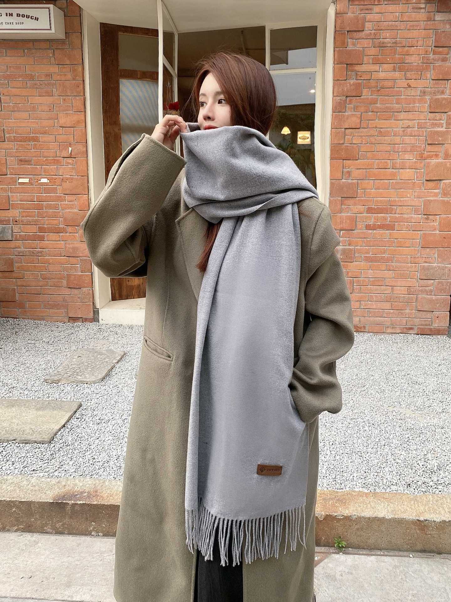 겨울 스카프 한국식 단색 스카프 숄 이중 목적 여성용 겨울 두꺼운 따뜻한 모조 캐시미어 스카프 학생 모든 매치