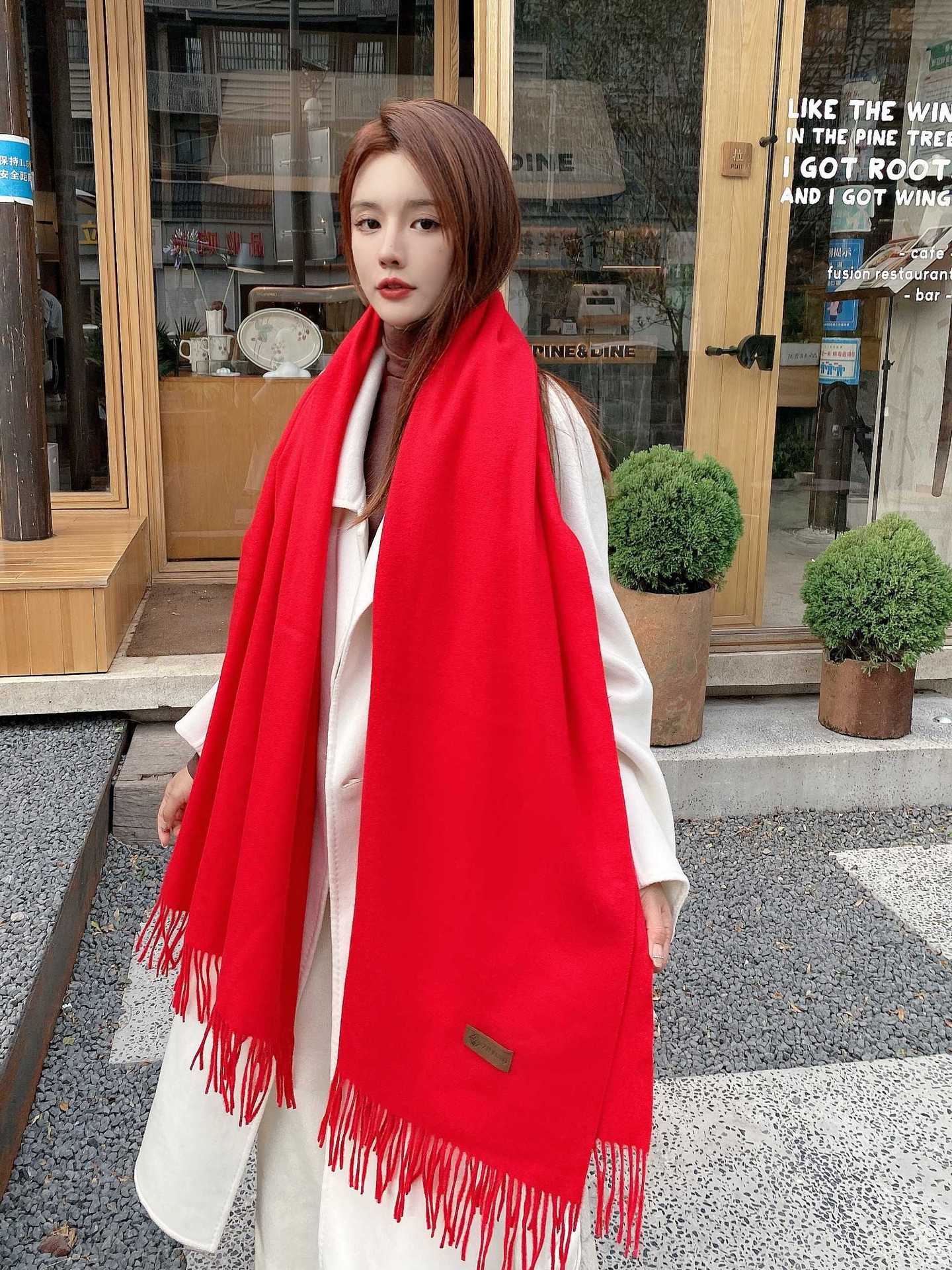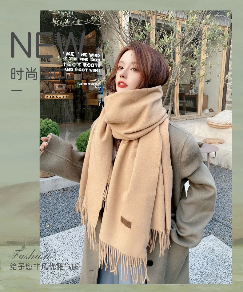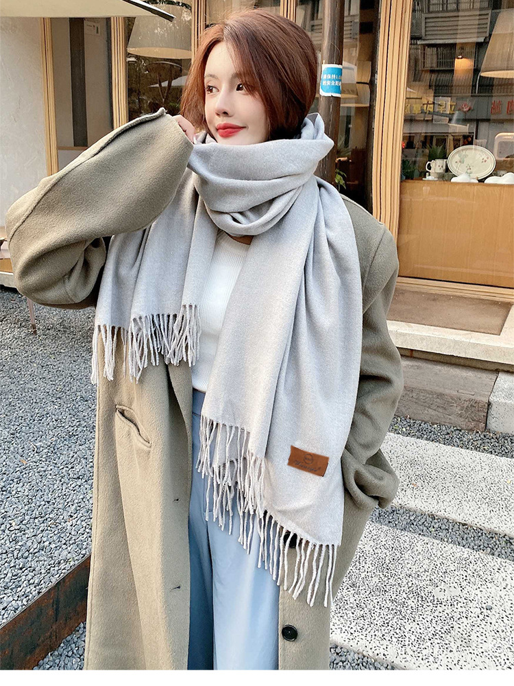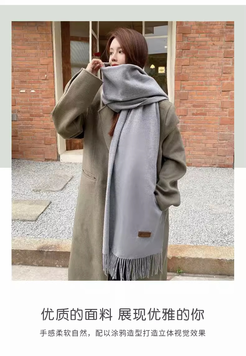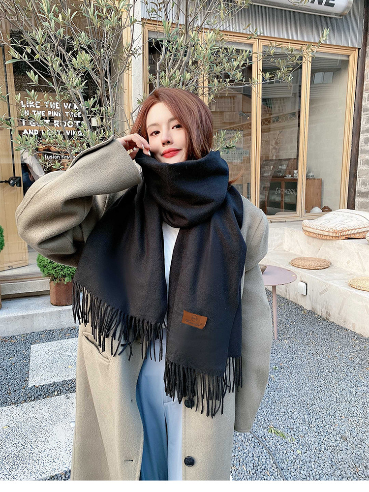 겨울 스카프 한국식 단색 스카프 숄 이중 목적 여성용 겨울 두꺼운 따뜻한 모조 캐시미어 스카프 학생 모든 매치