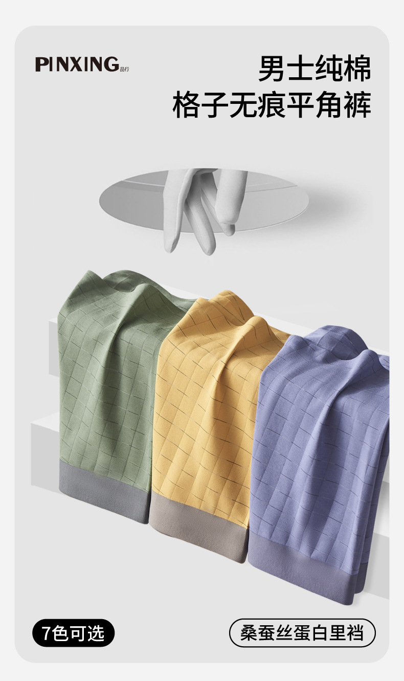 60 년대 면 통기성 뽕나무 실크 내부 팬티 남성 속옷 격자 무늬 원활한 항균 편안한 복서 바지스토어 가기