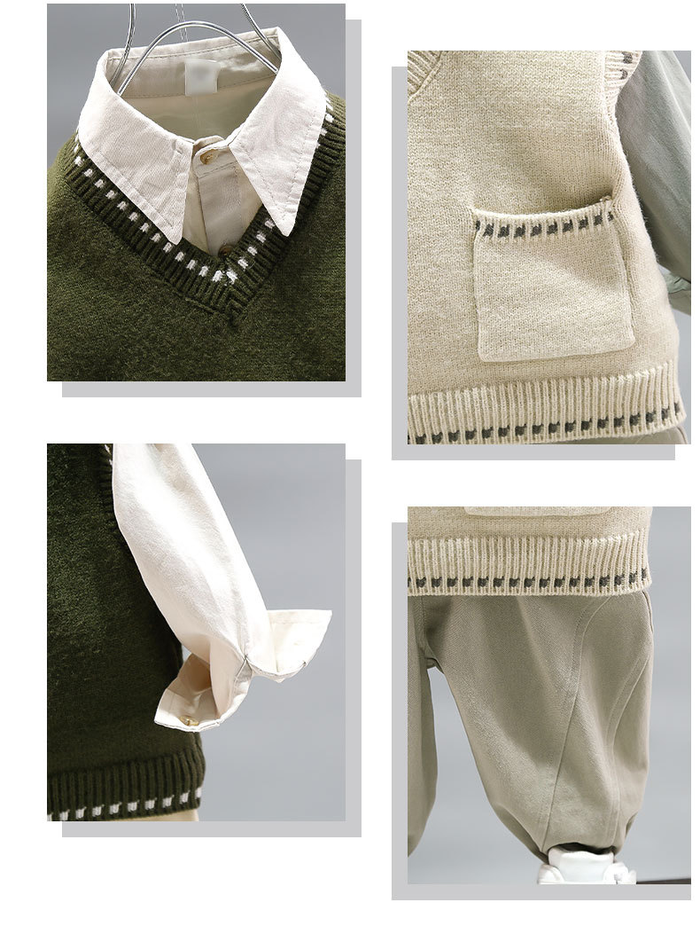 4283 소년 가을 세트 2023 새로운 스타일 아기 스웨터 조끼 셔츠 3 피스 아기 봄과 가을