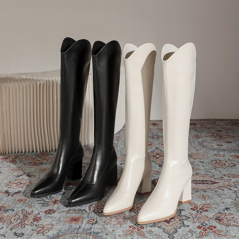 높은 부츠 여자의 가을과 겨울 새로운 영국 스타일 두꺼운 발 뒤꿈치 하지만 무릎 패션 35-42 플러스 사이즈 부츠스토어 가기