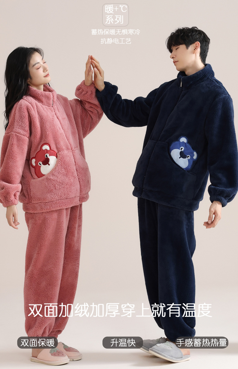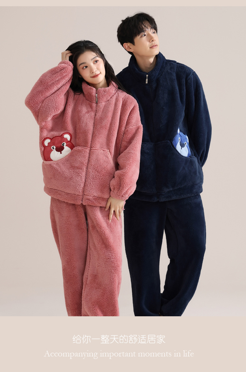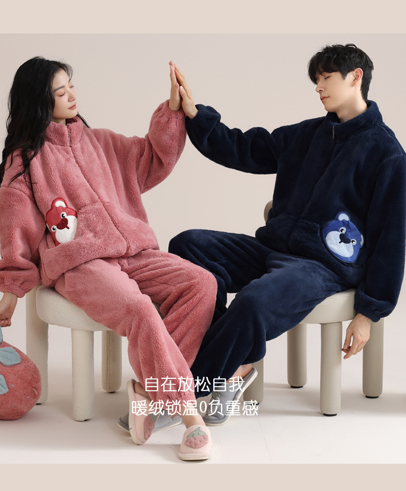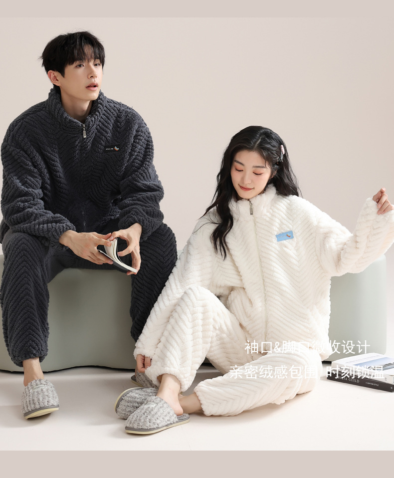 겨울 커플 잠옷 여자의 자카드 벨벳 따뜻한 남자와 여자의 가정 옷 기모 두꺼운 플란넬 세트 아웃웨어스토어 가기