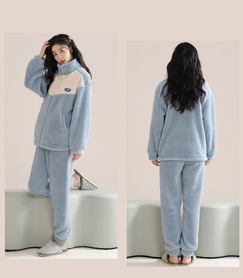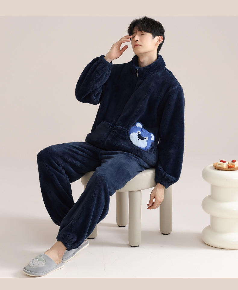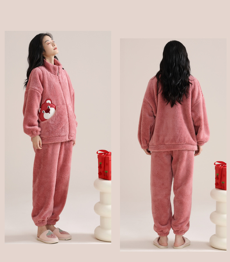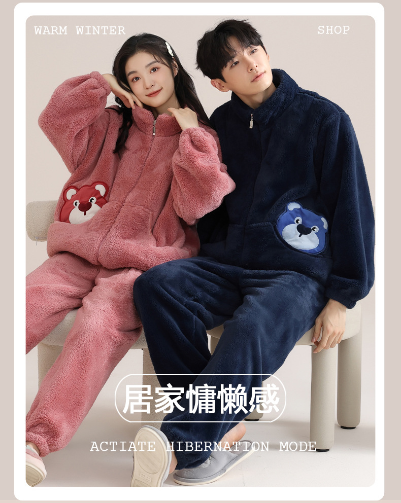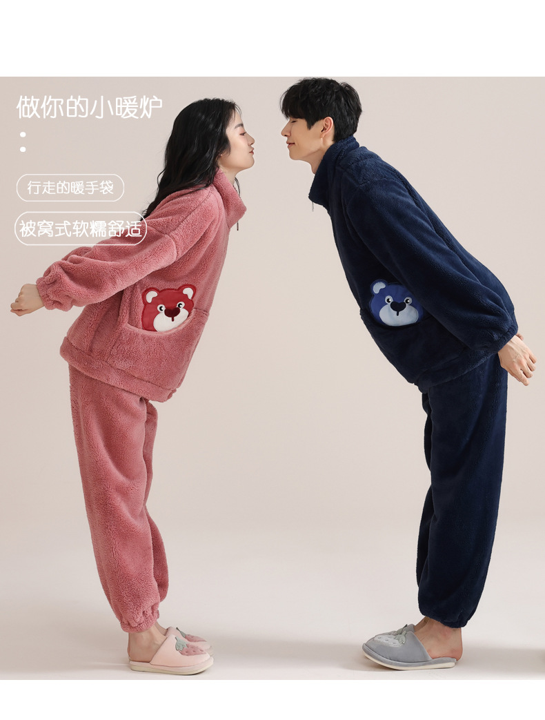 겨울 커플 잠옷 여자의 자카드 벨벳 따뜻한 남자와 여자의 가정 옷 기모 두꺼운 플란넬 세트 아웃웨어스토어 가기