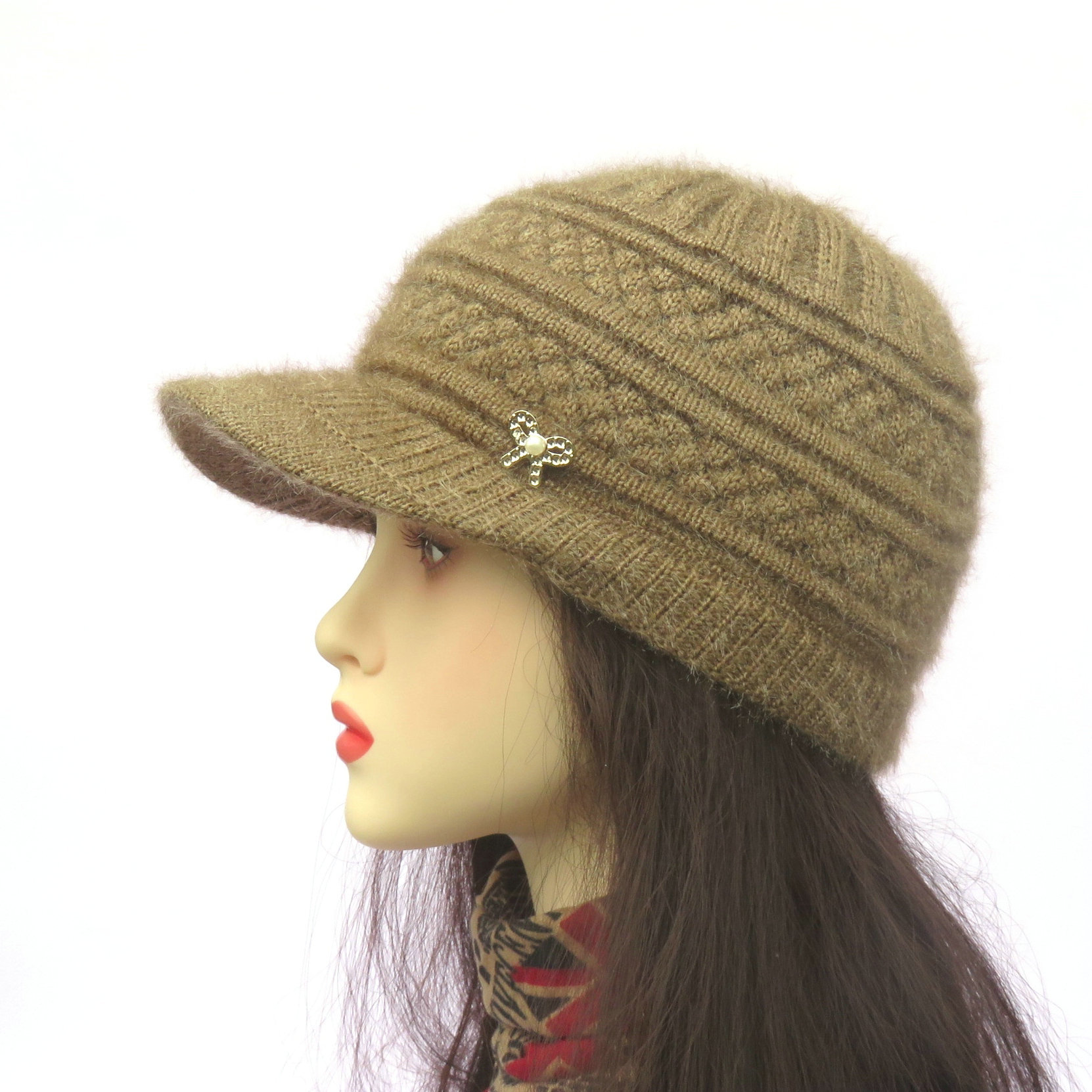 가을 겨울 따뜻하고 다용도인 귀덮개 니트 모자, 두 겹의 실로 만든 가로 줄무늬 파인애플 패턴의 여성용 보온 모자
