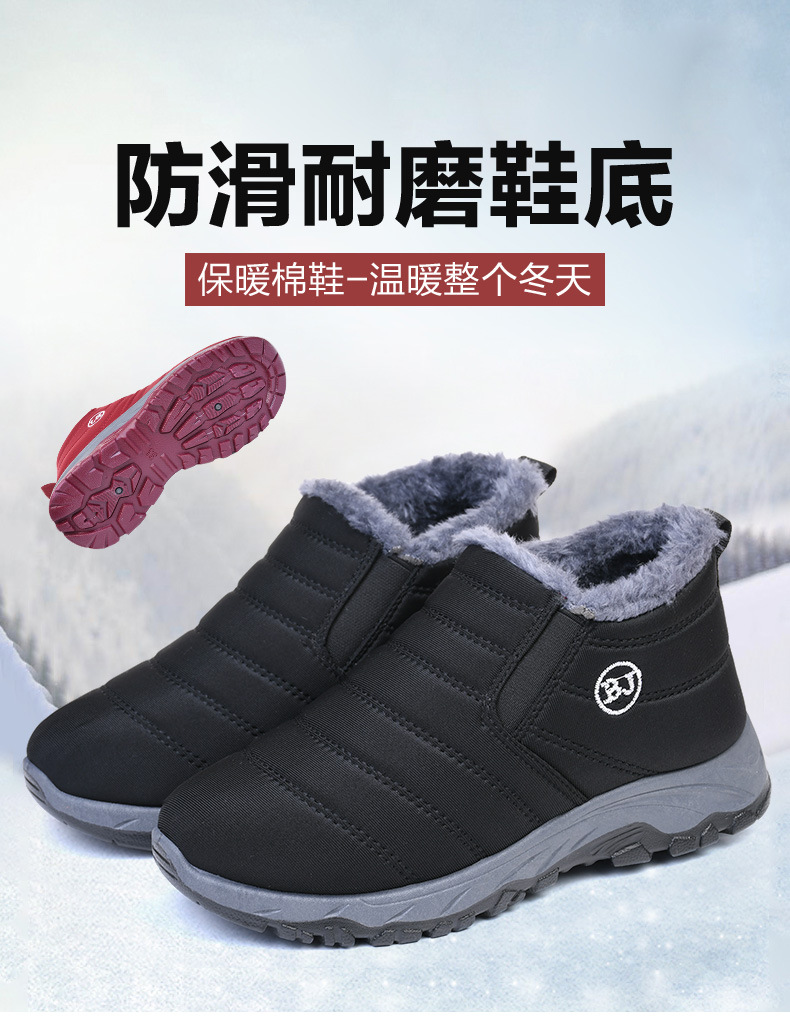 겨울 면 신발 남성과 여성 커플 노인 면 신발 기모 두꺼운 미끄럼 방지 부드러운 단독 중년 및 노인 어머니 신발 스노우 부츠스토어 가기