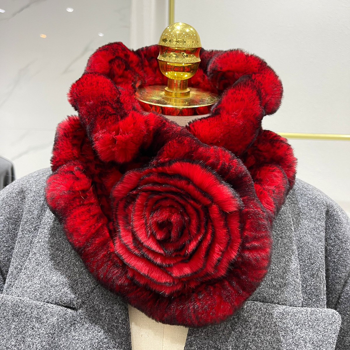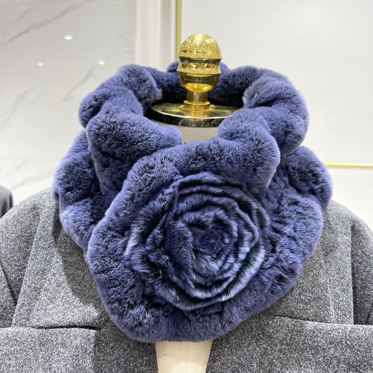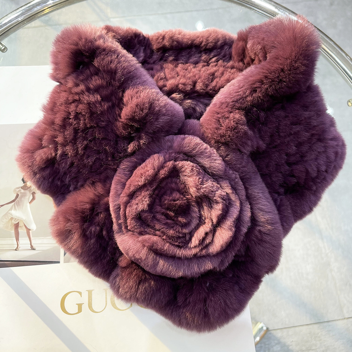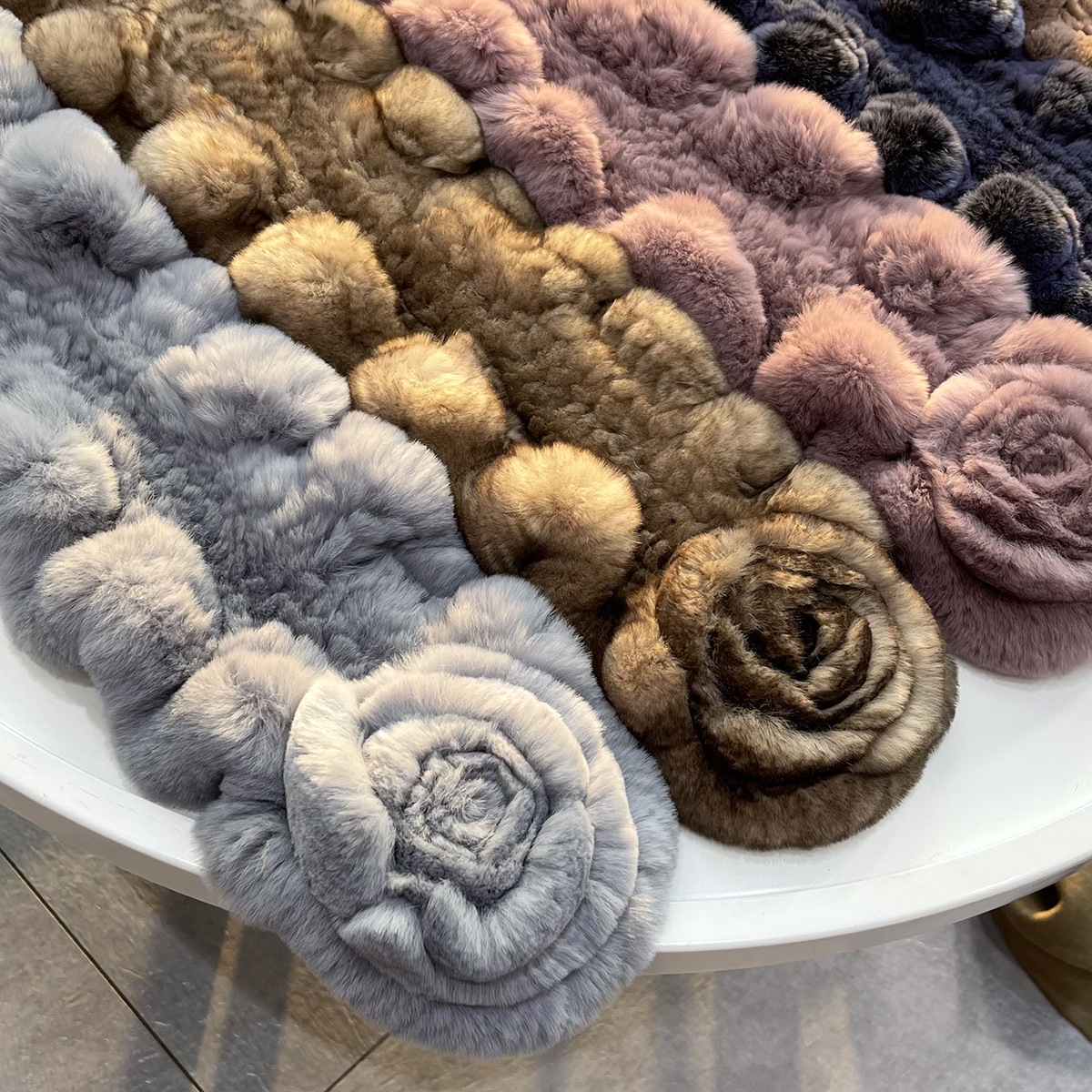 공장 스트레이트 헤어 픽업 렉스 토끼 모피 짠 모피 스카프 우아한 꽃 따뜻한 목 여성의 양면 두꺼운 따뜻한