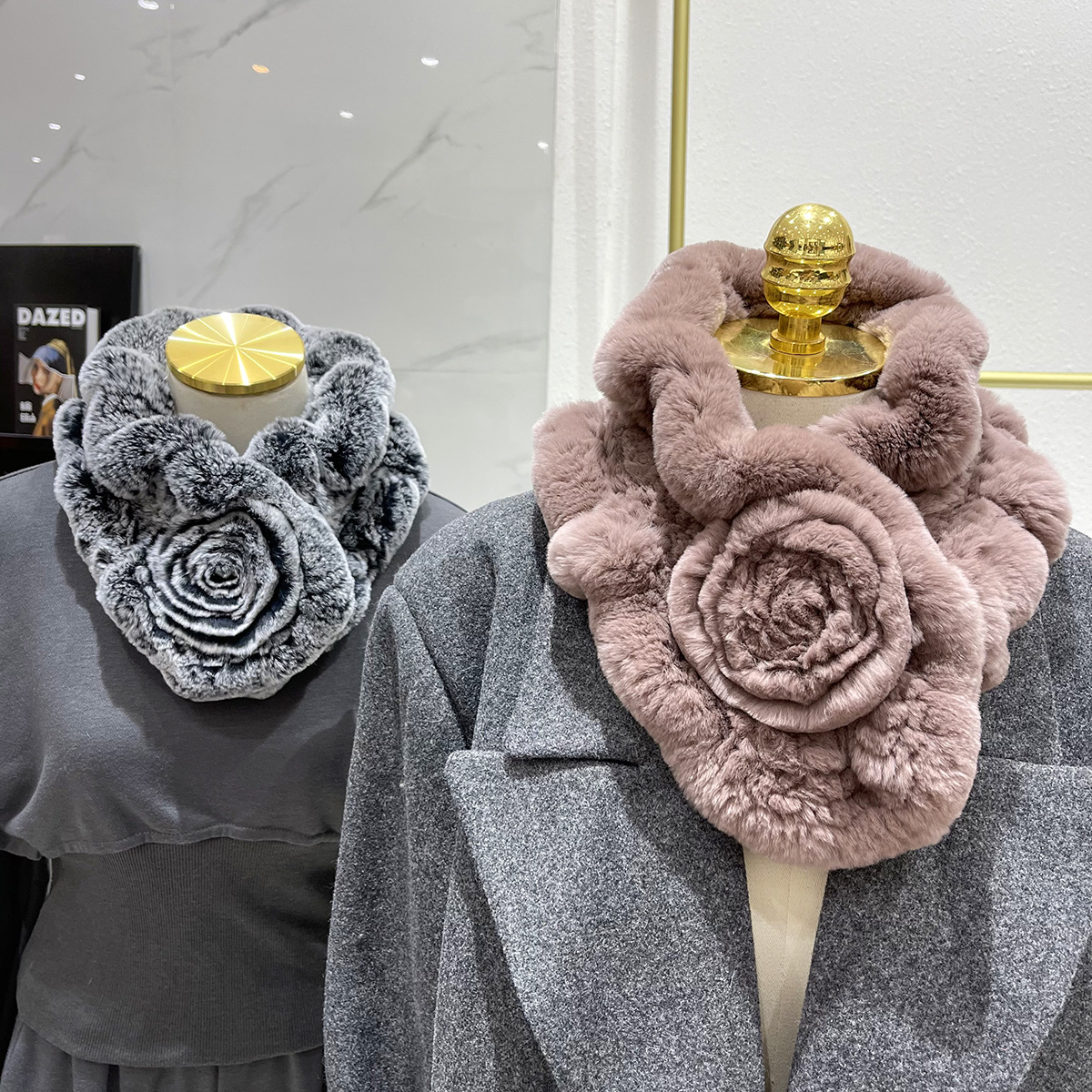 공장 스트레이트 헤어 픽업 렉스 토끼 모피 짠 모피 스카프 우아한 꽃 따뜻한 목 여성의 양면 두꺼운 따뜻한스토어 가기