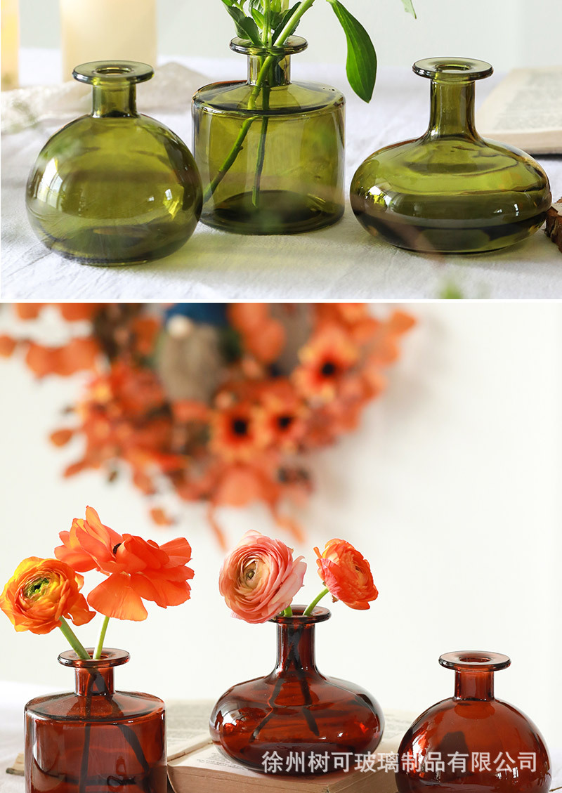 다채로운 미니 유리 꽃병 작은 입 투명 데스크탑 수경 꽃 꽃꽂이 꽃 홈 장식 장식품 도매