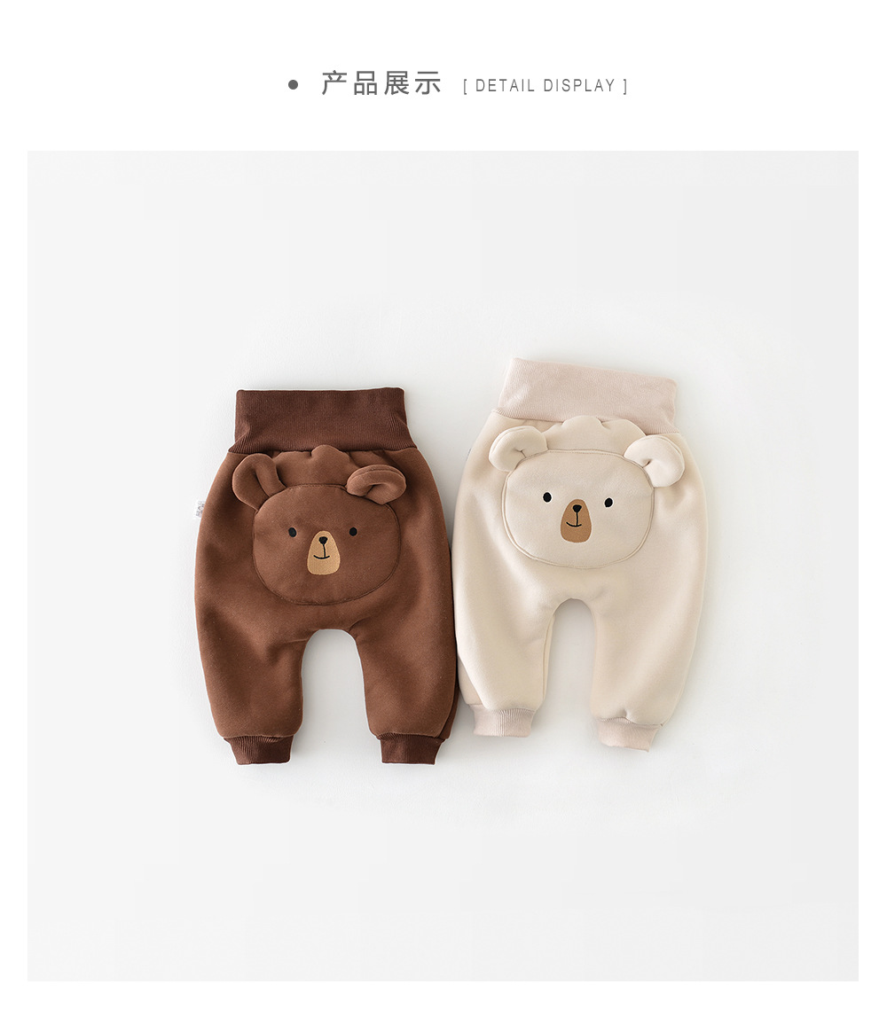 아기 겨울 바지 만화 곰 기모 두꺼운 겨울 높은 허리 배 보호 큰 PP 바지 소년 소녀 아기 바지