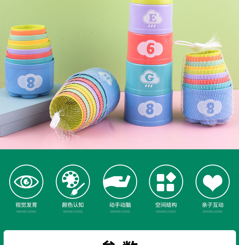 어린이 장난감 재미 스태킹 컵 퍼즐 조기 교육 아기 아기 무지개 타워인지 마구간 장난감 도매