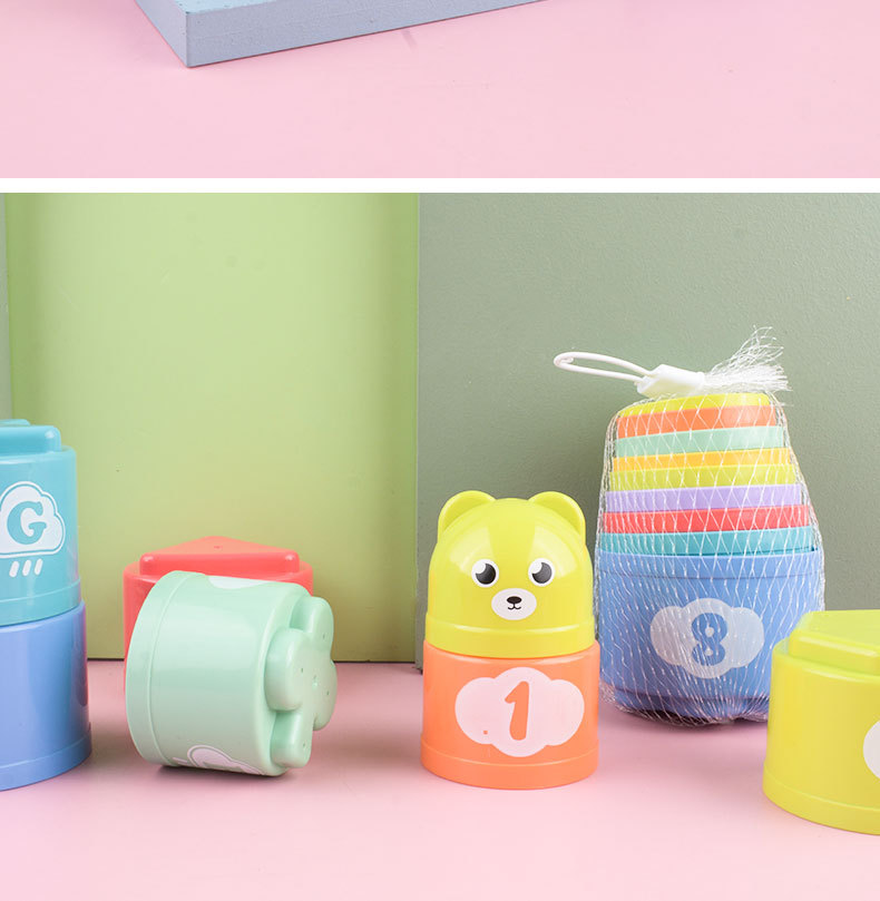 어린이 장난감 재미 스태킹 컵 퍼즐 조기 교육 아기 아기 무지개 타워인지 마구간 장난감 도매스토어 가기