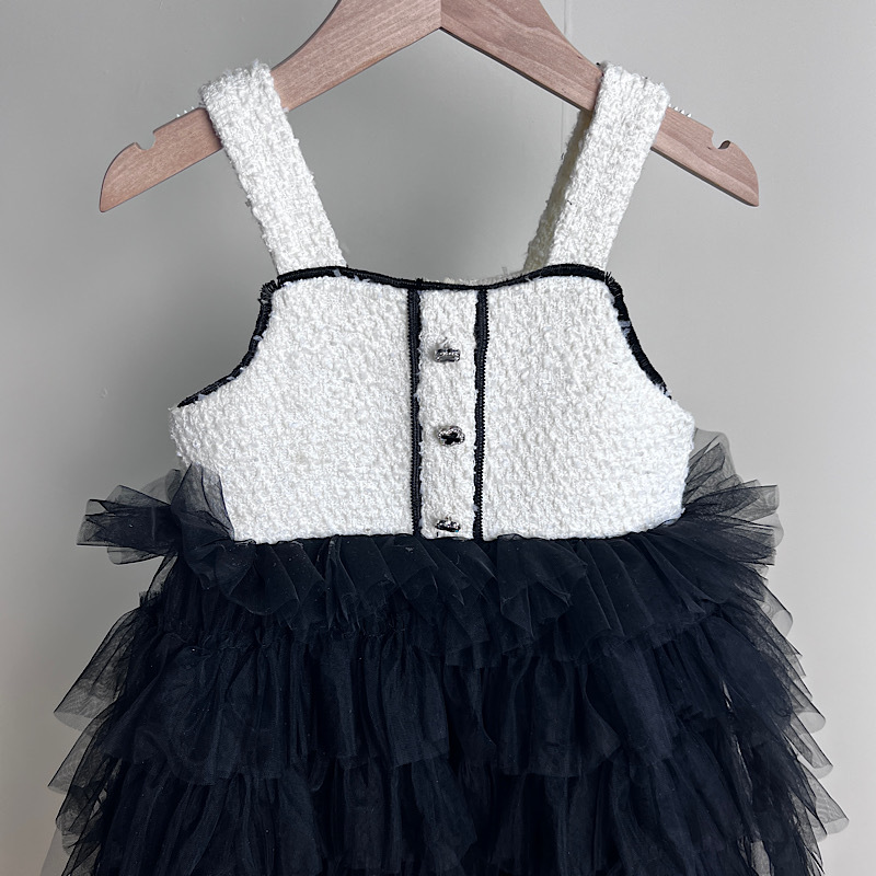• 흑백 트위드 모자이크 케이크 조끼 치마