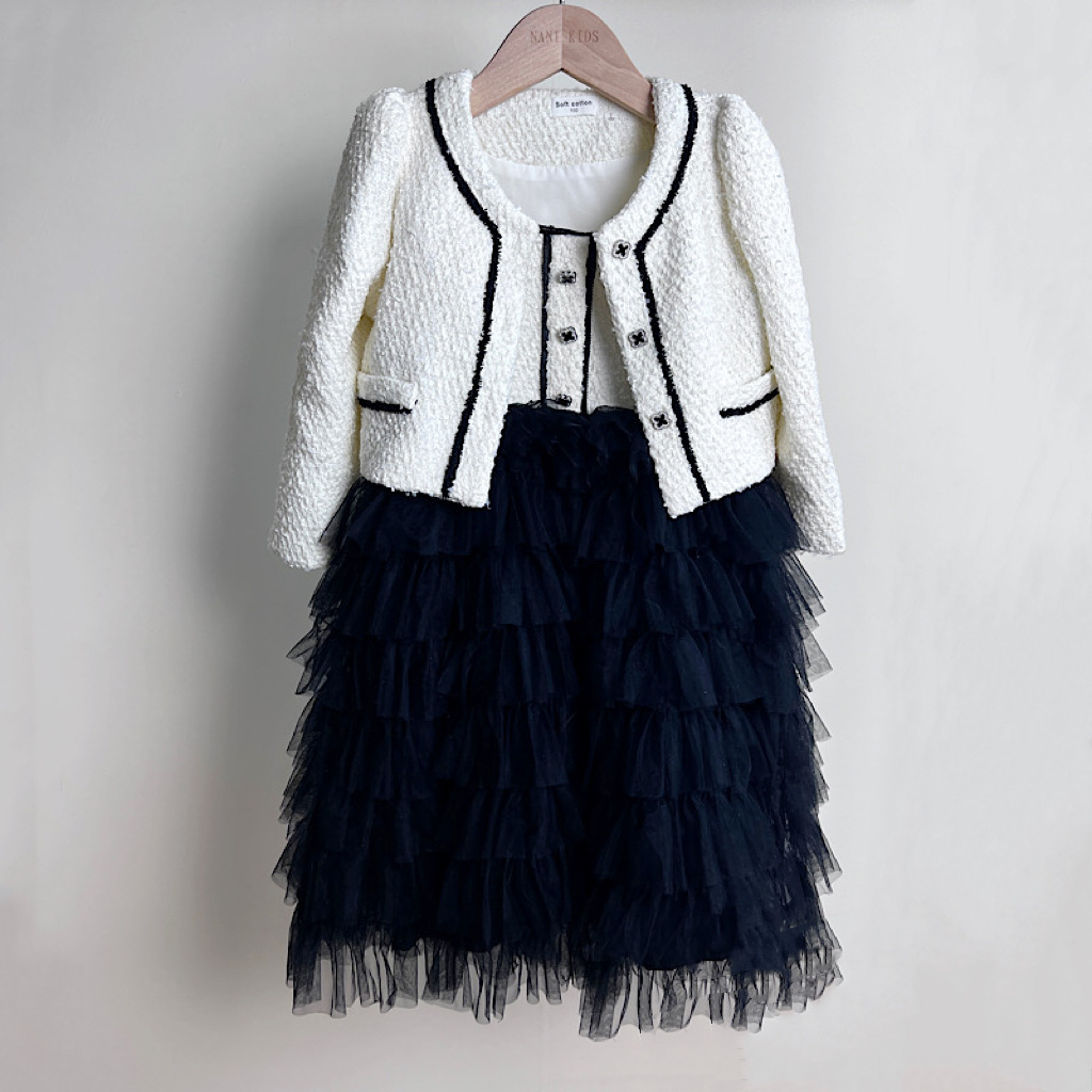재고 소녀 가을과 겨울 원피스 울 스티치 메쉬 스트랩 투투 스커트 중공업 조끼 케이크 스커트 원피스스토어 가기