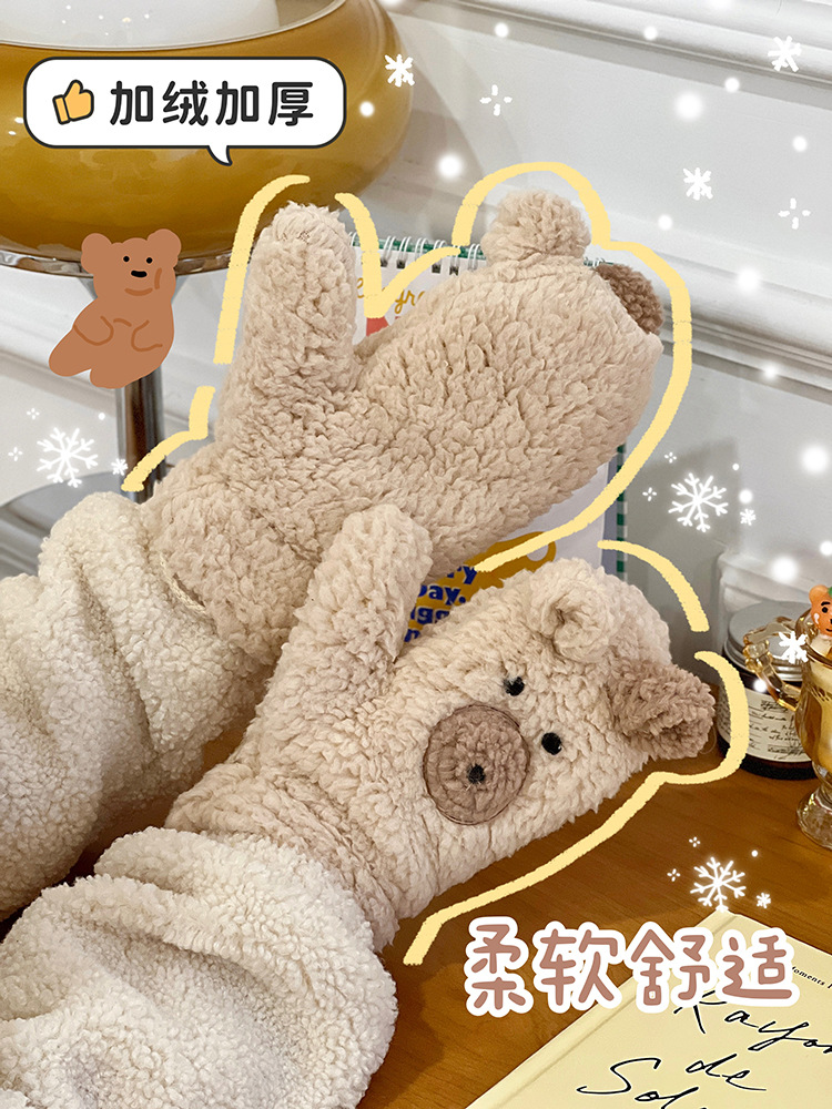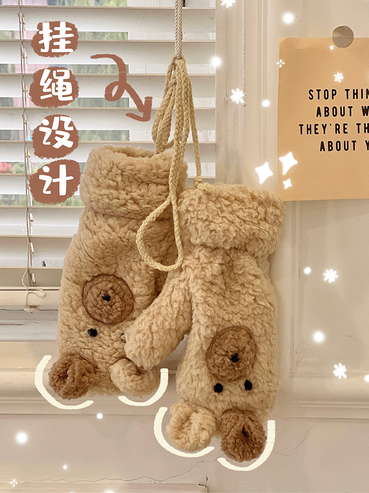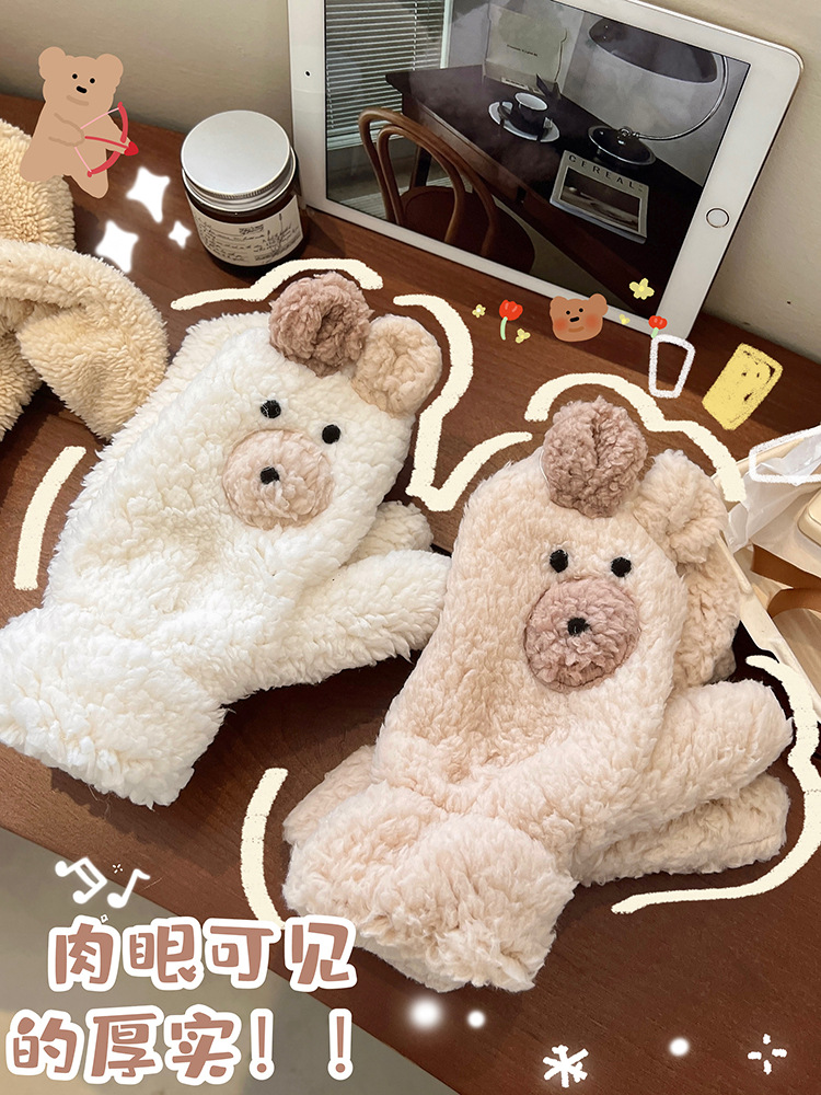 겨울 장갑 커플 남성과 여성을위한 귀여운 곰 모든 경기 학생 두꺼운 승마 목 풀 손가락 장갑