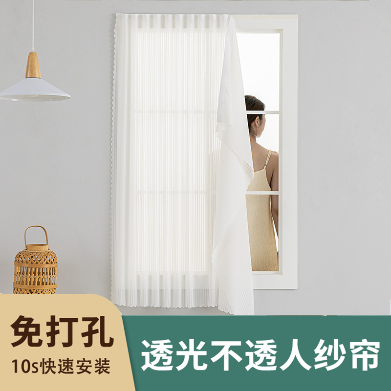 벨크로 커튼 펀치 프리 설치 베이 창 스크린 커튼 수직 셔터 투명 투과성 발코니 차양 흰색 원사 크로스 보더스토어 가기