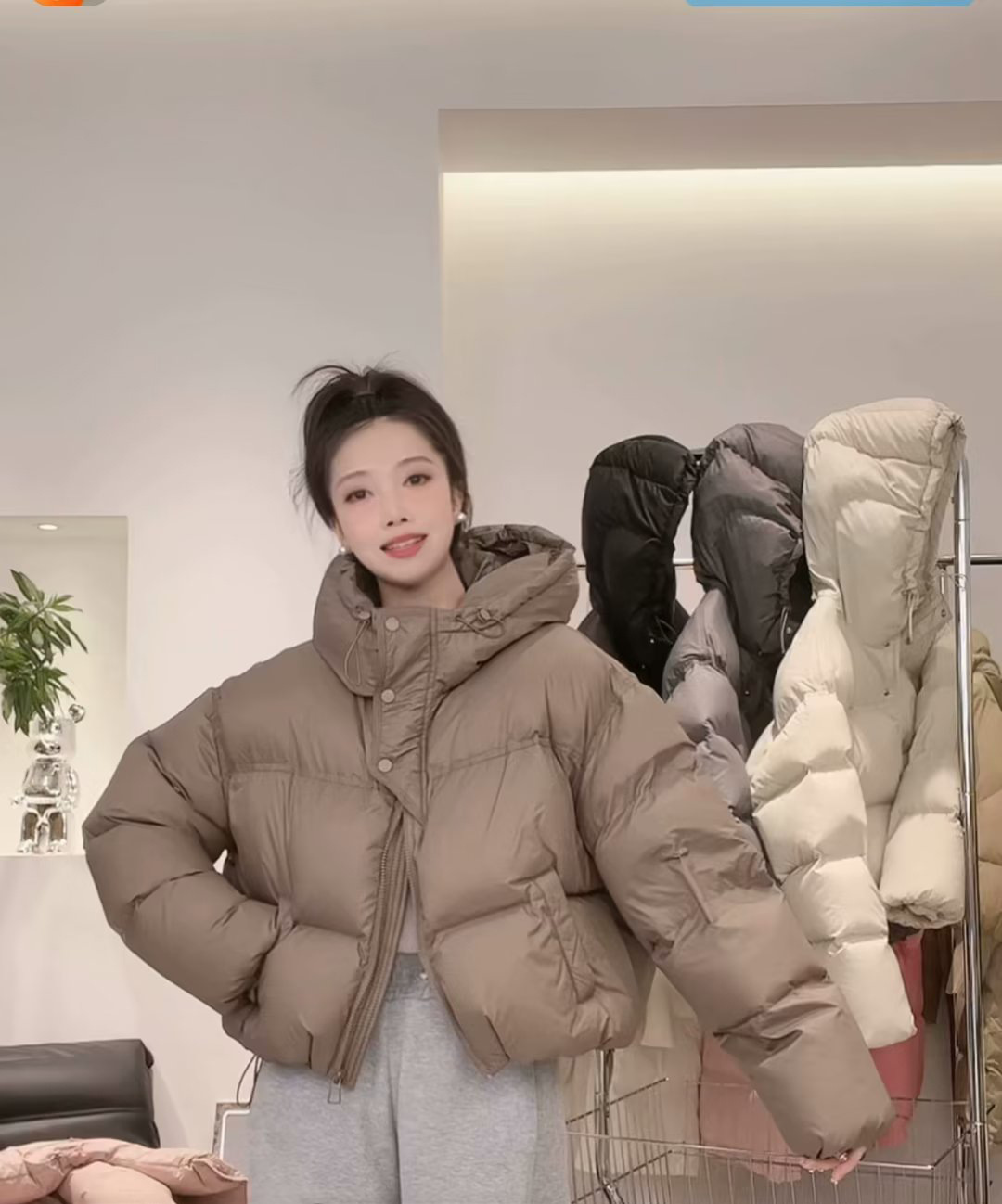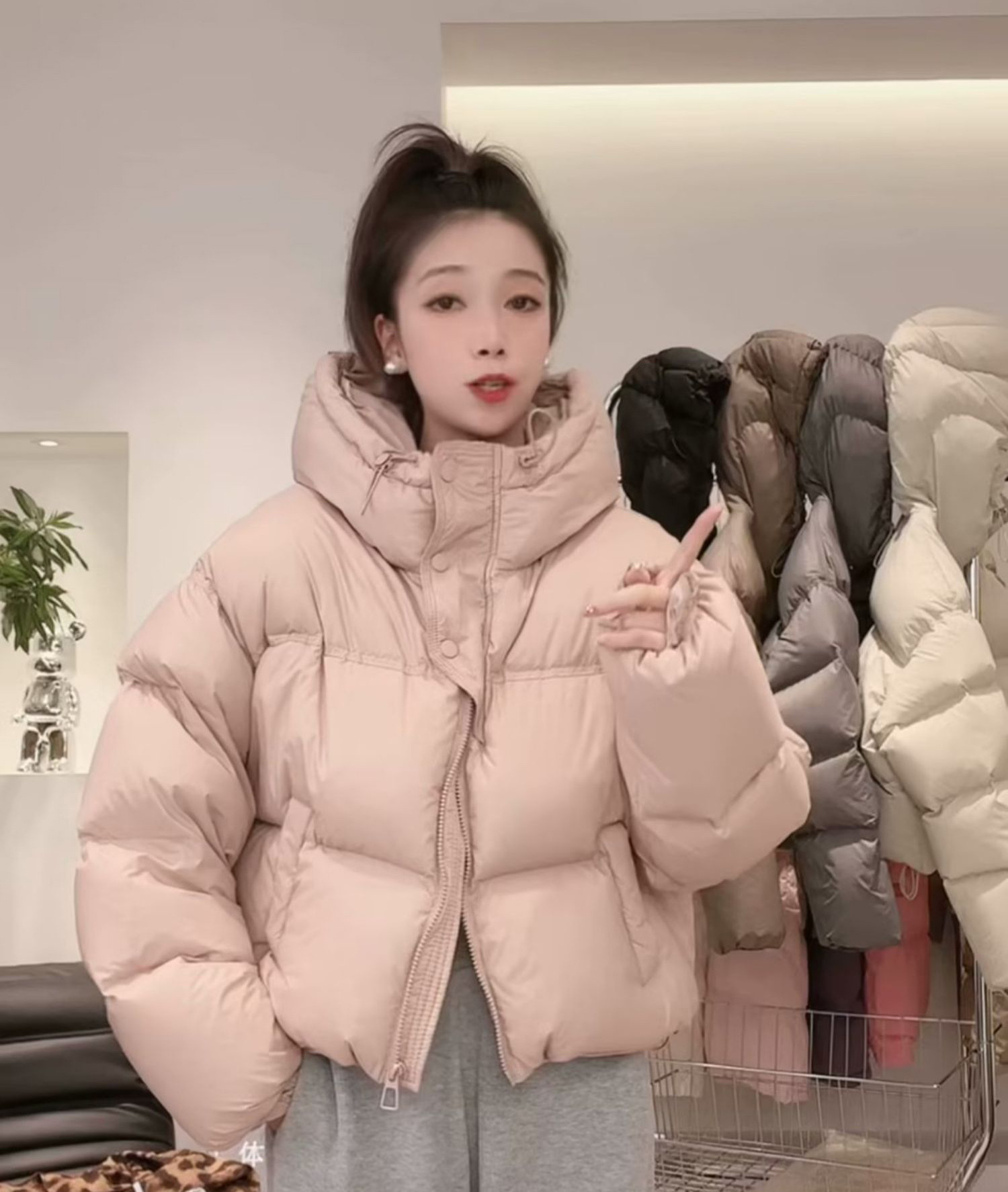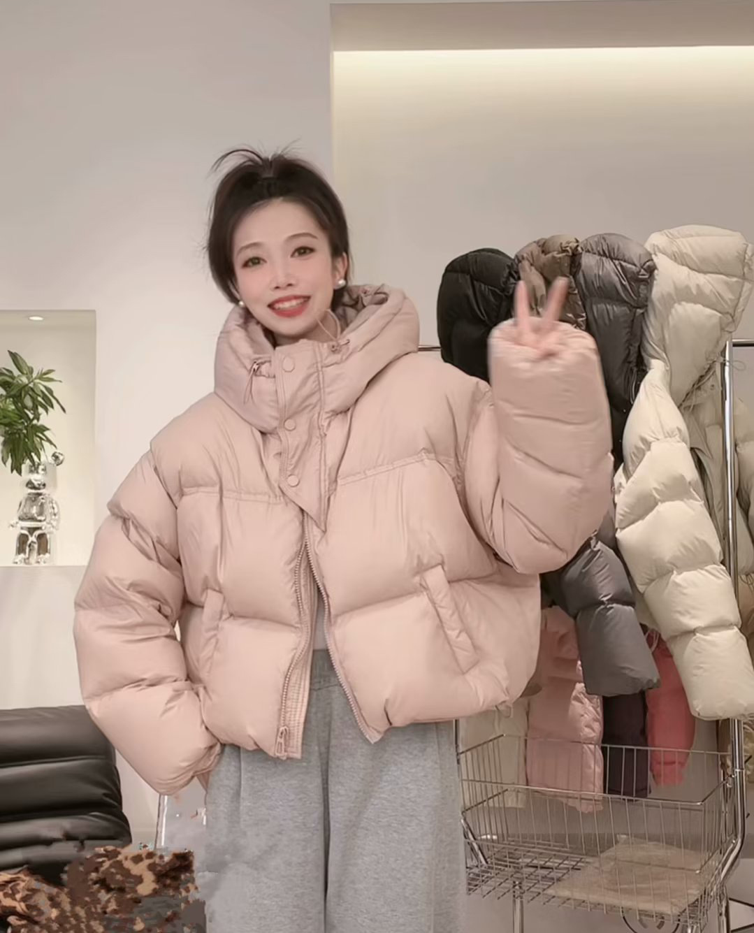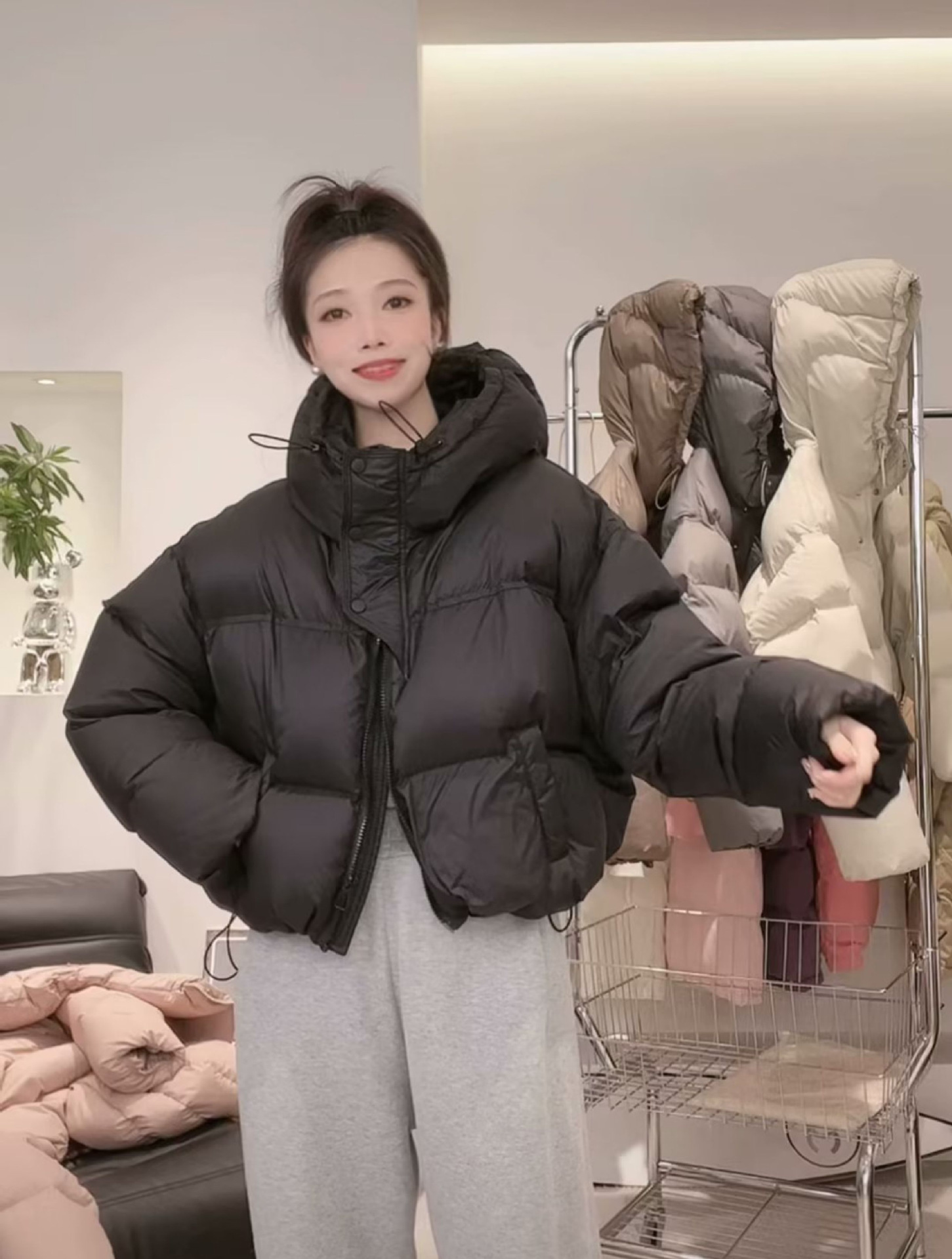 후드 쇼트 다운 재킷 여성용 2023 겨울 새로운 한국 스타일 작은 하이 웨이스트 두꺼운 빵 코트 겨울 옷스토어 가기