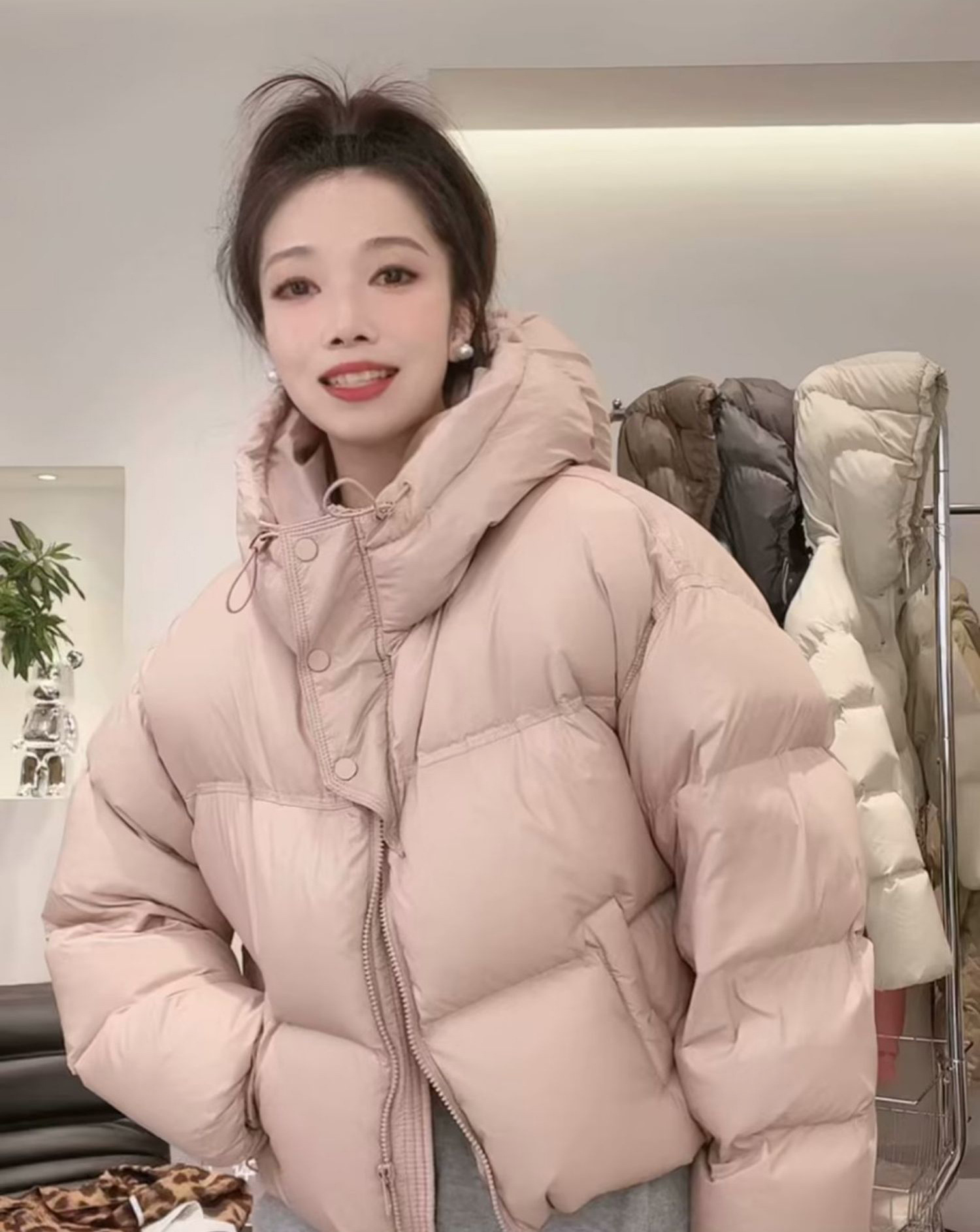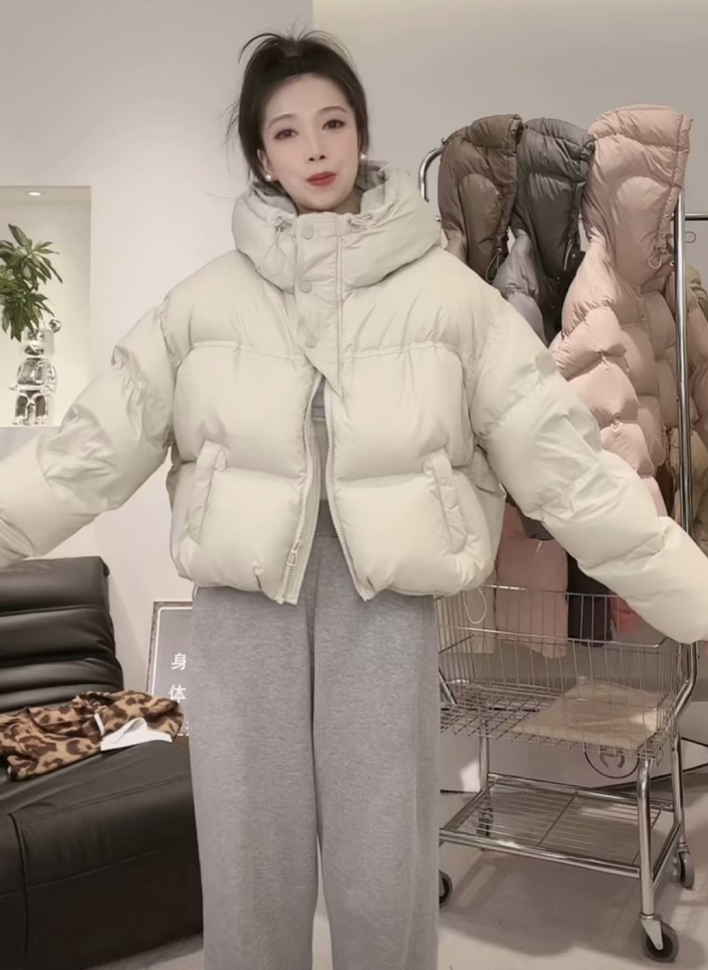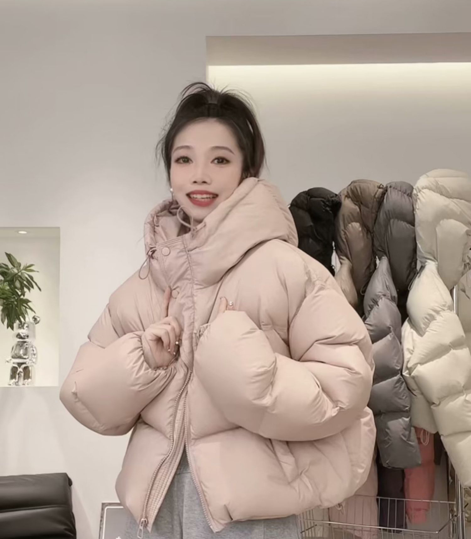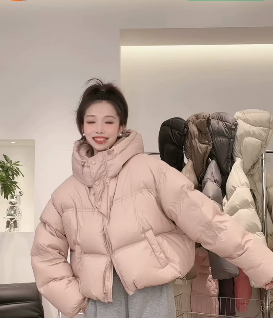 후드 쇼트 다운 재킷 여성용 2023 겨울 새로운 한국 스타일 작은 하이 웨이스트 두꺼운 빵 코트 겨울 옷스토어 가기