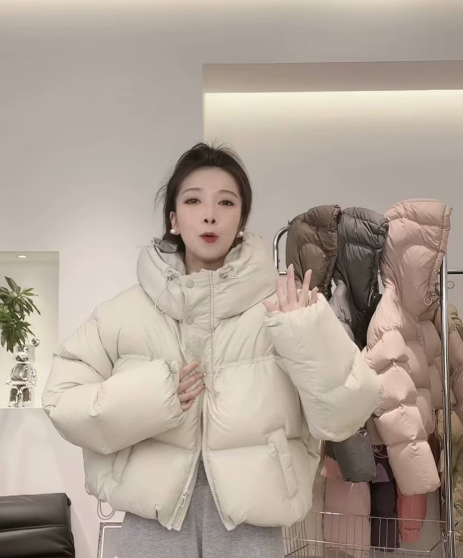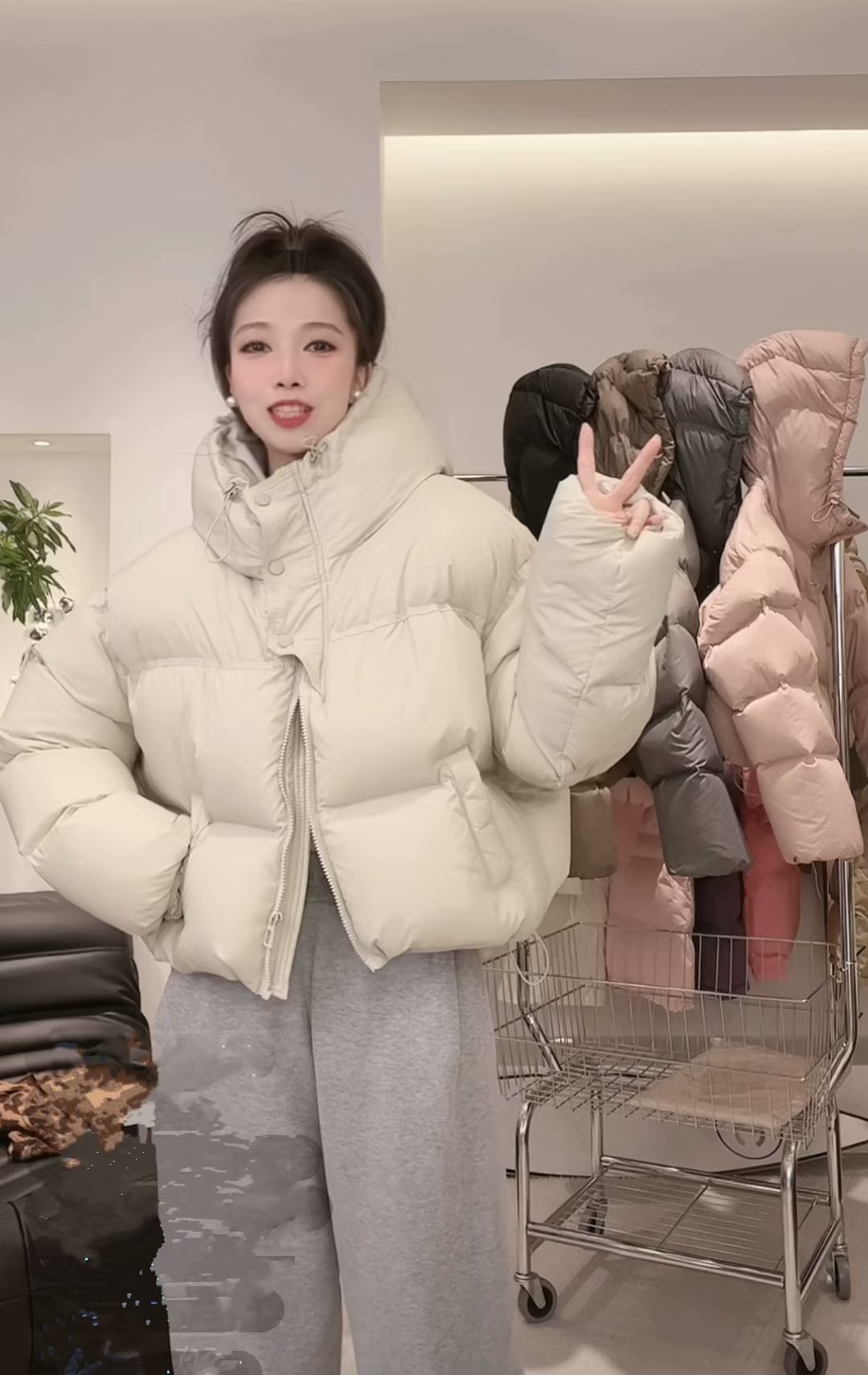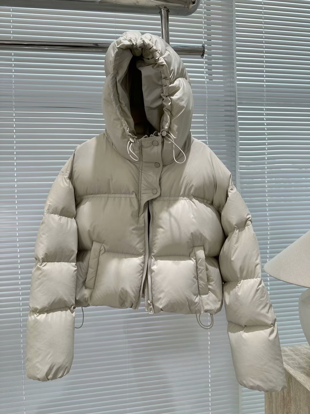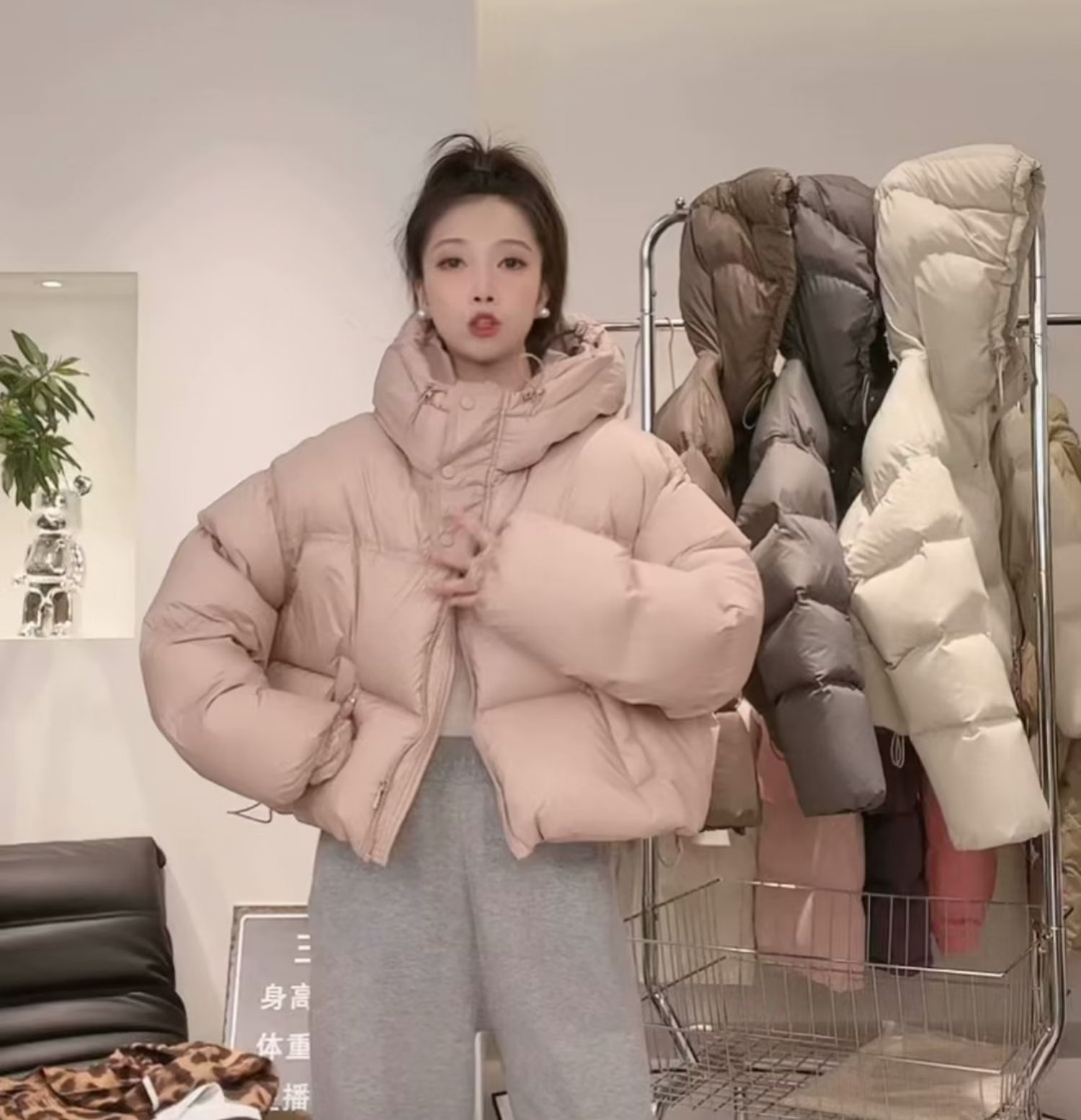 후드 쇼트 다운 재킷 여성용 2023 겨울 새로운 한국 스타일 작은 하이 웨이스트 두꺼운 빵 코트 겨울 옷스토어 가기