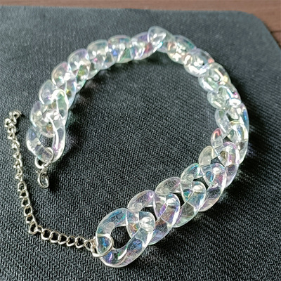 欧美跨境ab彩亚克力扭片链扭扣单扣女士手工项链饰品批发