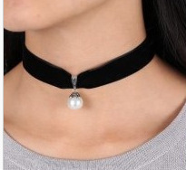유럽과 미국의 간단한 블랙 벨벳 모조 진주 코끼리 태극권 펜던트 여성 쇄골 체인 목걸이 체인 도매