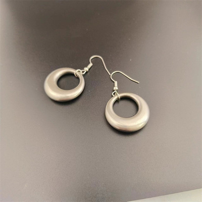 时尚通勤百搭圆形耳钩光面十字架吊坠女士耳环耳钉饰品货源批发