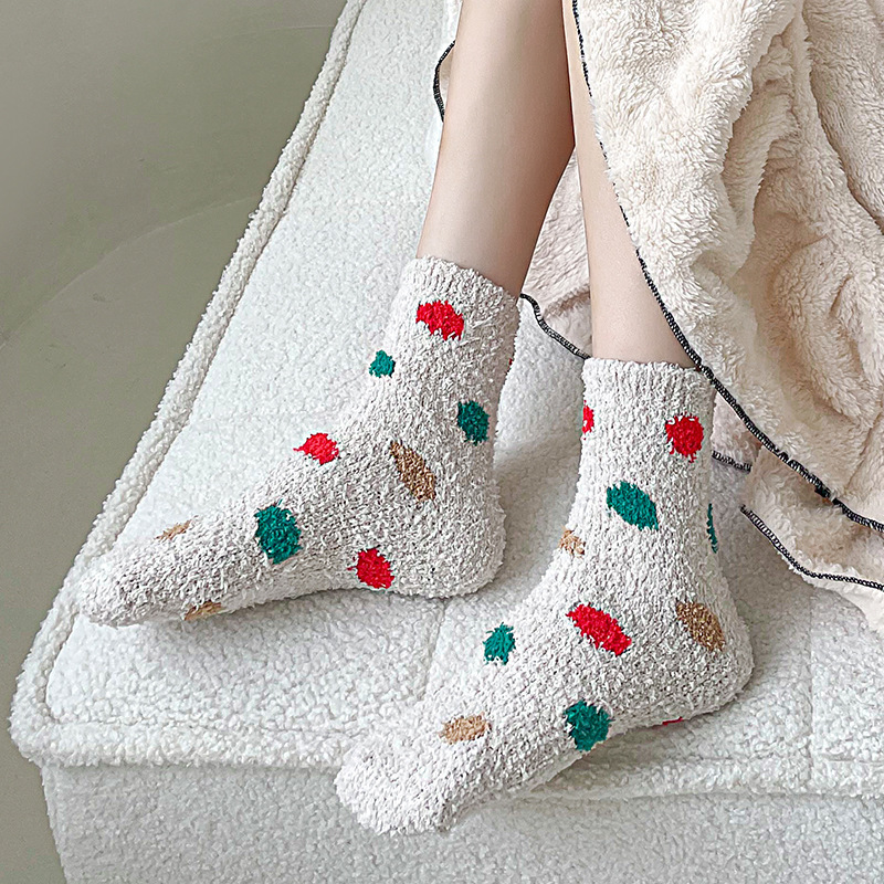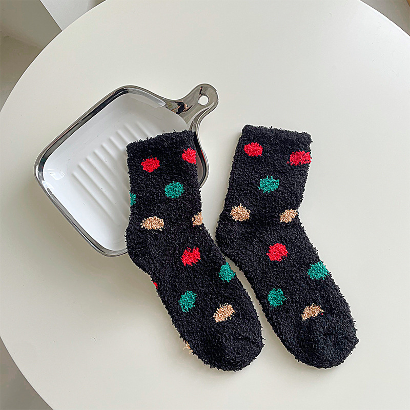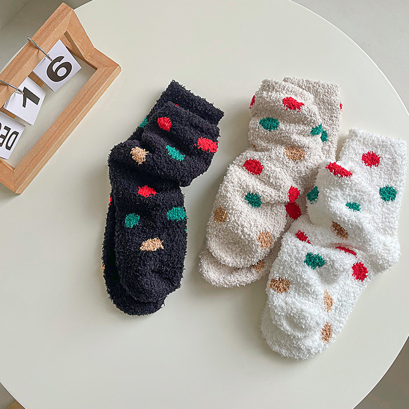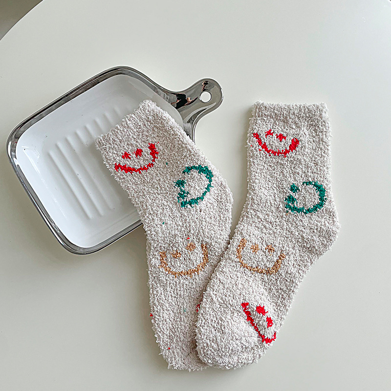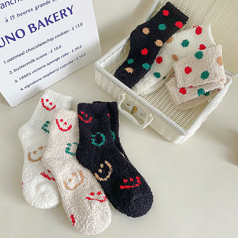 겨울 두꺼운 따뜻한 봉제 양말 여성의 일본식 달콤한 색상 스마일 양말 홈 따뜻한 산호 양털 양말