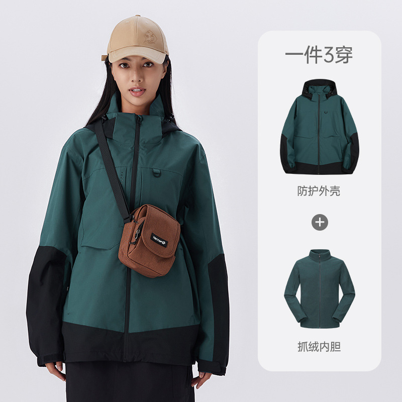 2023 가을과 겨울 새로운 야외 연인 투피스 패션 컬러 매칭 야외 옷 양털 라이너 정품