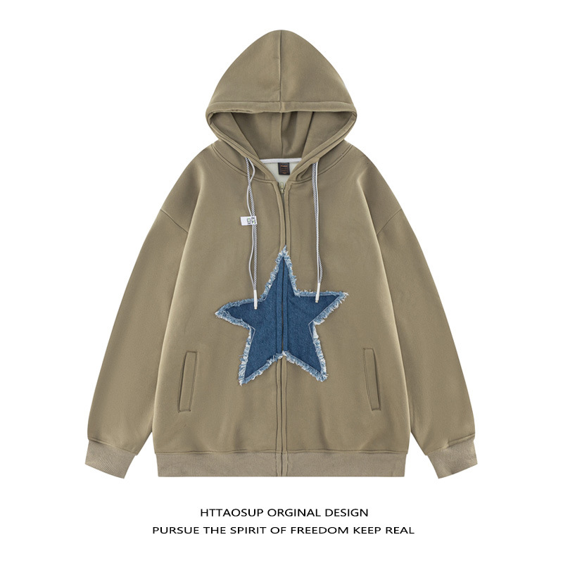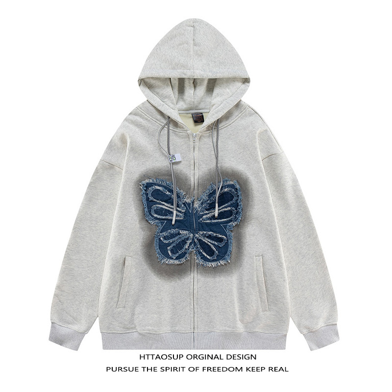 포장 마차의 13 줄 재고 도매 복고풍 나비 패치 후드 스웨터 소년과 소녀 기모 특대 코트스토어 가기