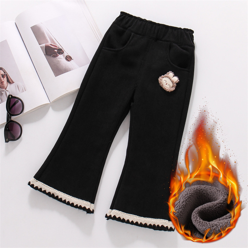 여아 플레어 팬츠 기모 코듀로이 팬츠 겨울 새로운 스트레치 여아 긴 다리 따뜻한 바지 트렌디 아우터