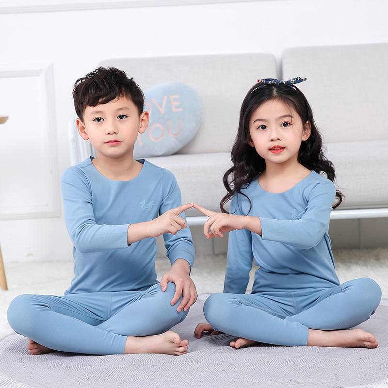 재고 어린이 열 속옷 단색 라운드 넥 어린이 Shirong 세트 뼈없는 가정 의류 소년 소녀 및 초등학생을위한 세트