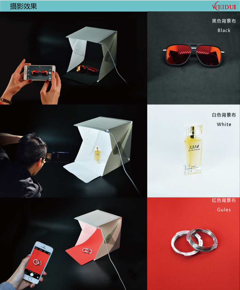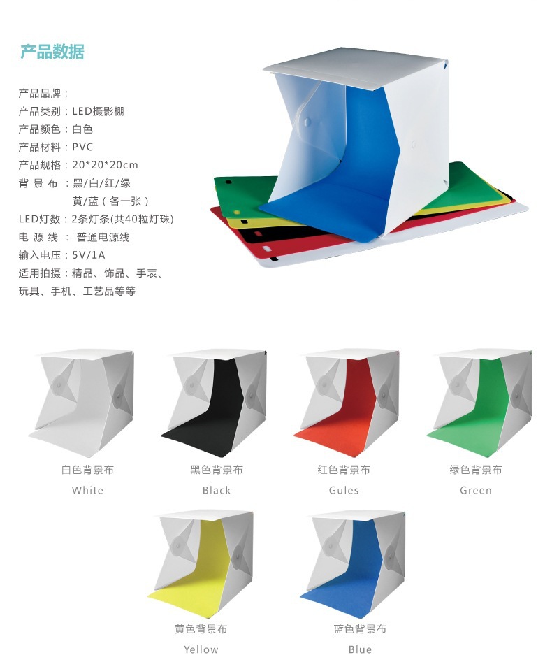 20cm 스튜디오 제품 촬영 LED 라이트 버튼 소프트 라이트 박스 접이식 휴대용 미니 스몰 사이즈 스튜디오