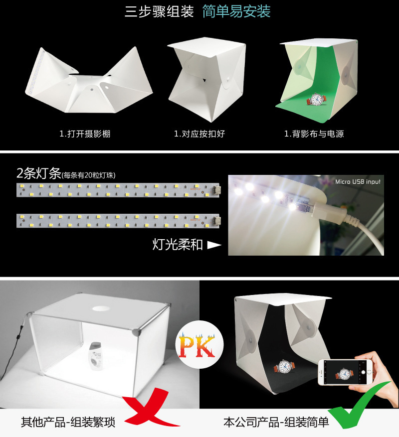 20cm 스튜디오 제품 촬영 LED 라이트 버튼 소프트 라이트 박스 접이식 휴대용 미니 스몰 사이즈 스튜디오스토어 가기