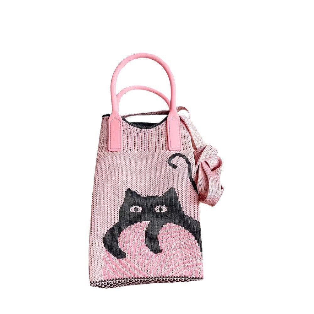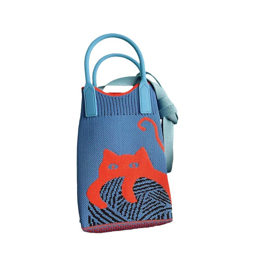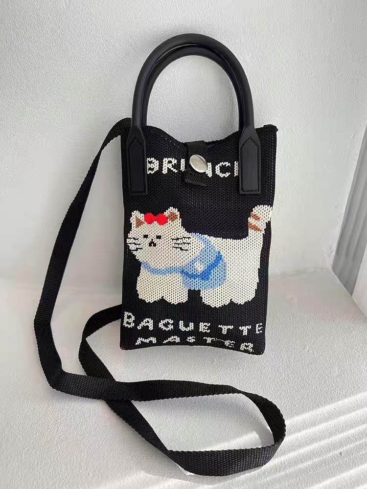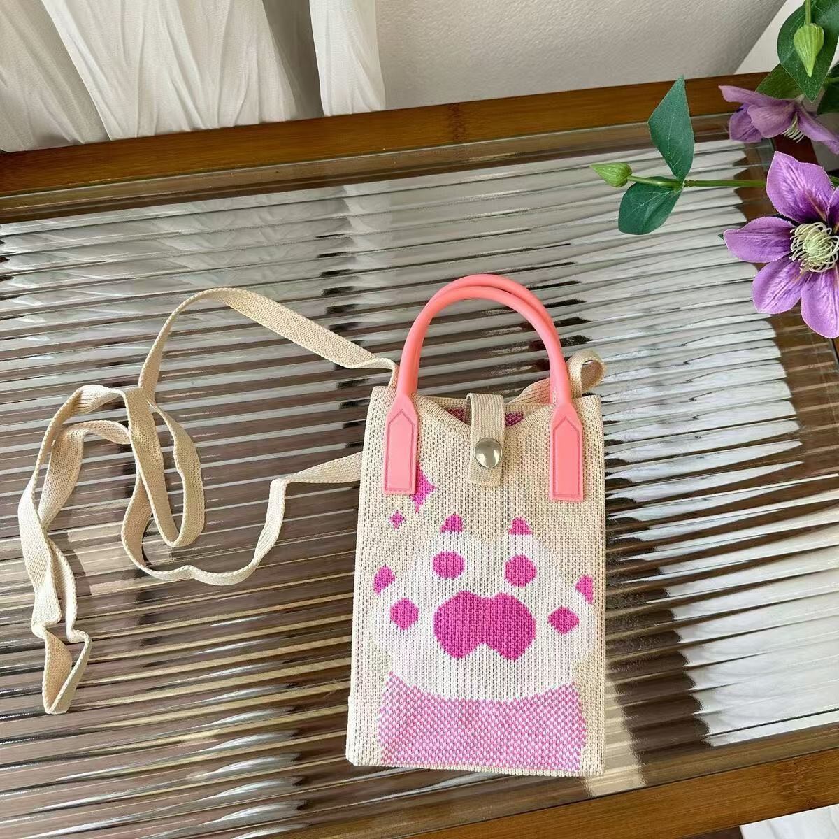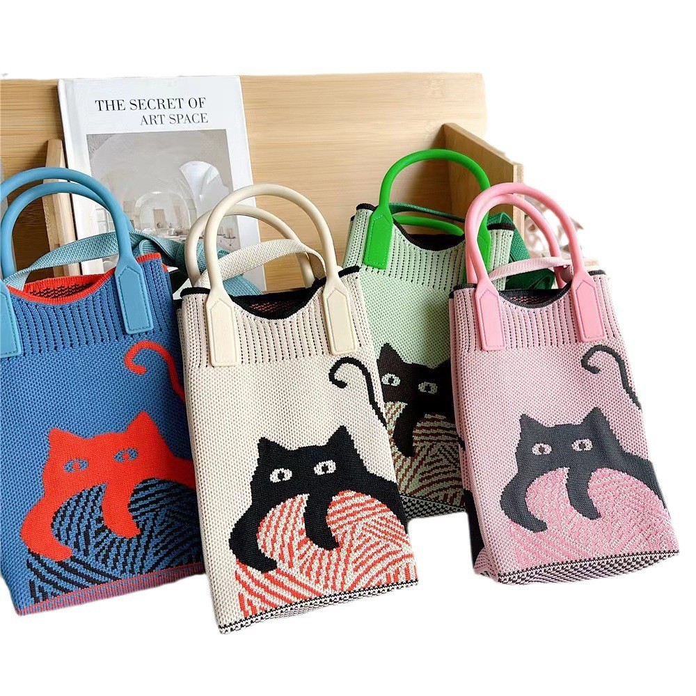 휴대 전화 가방 용 고양이 팩 여성용 크로스 바디 미니 백 작고 귀여운 경량 사계절 핸드백 니트 가방