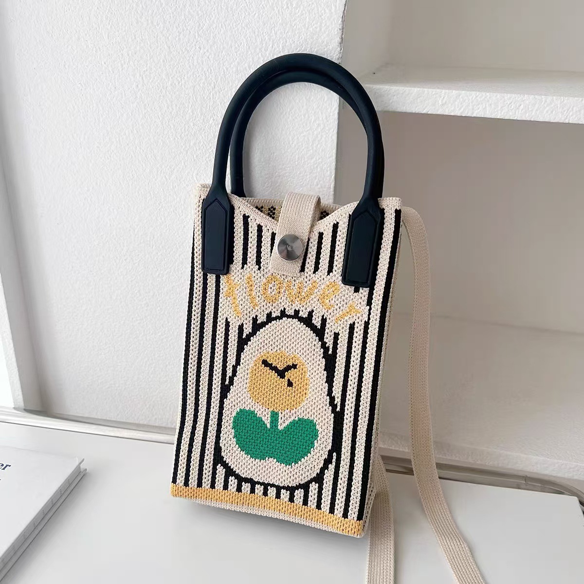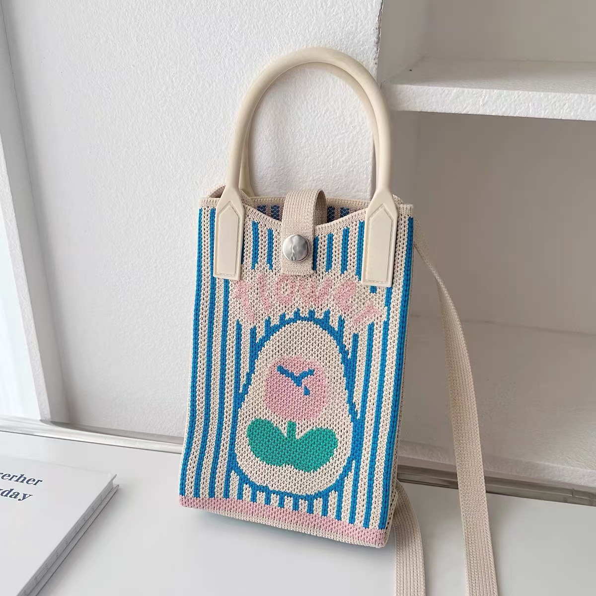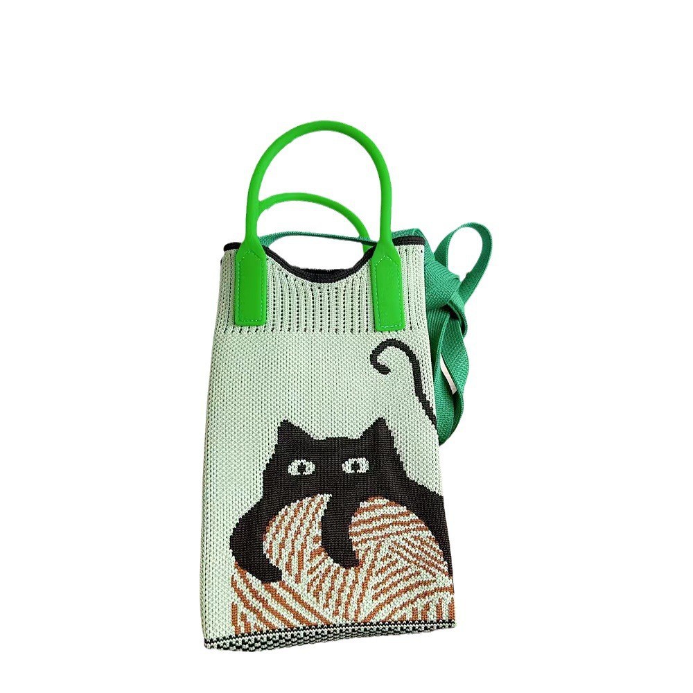 휴대 전화 가방 용 고양이 팩 여성용 크로스 바디 미니 백 작고 귀여운 경량 사계절 핸드백 니트 가방스토어 가기