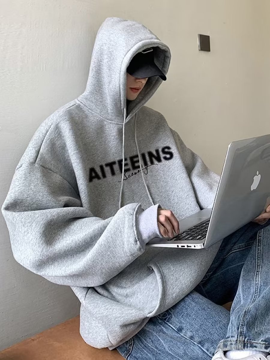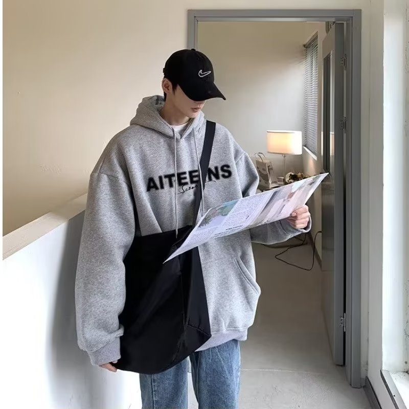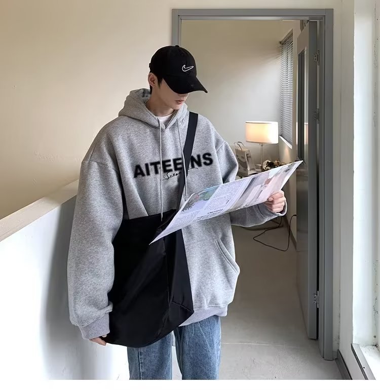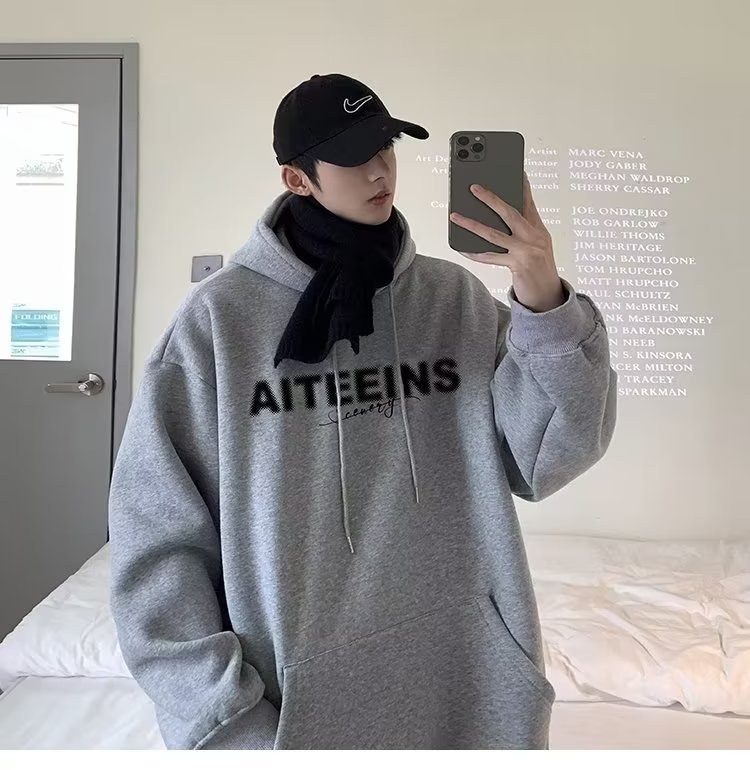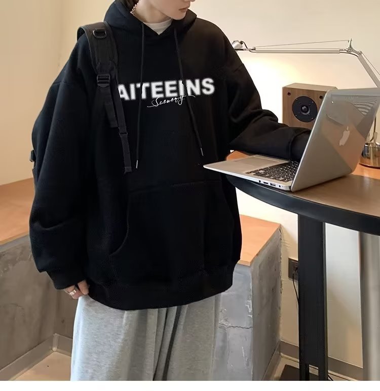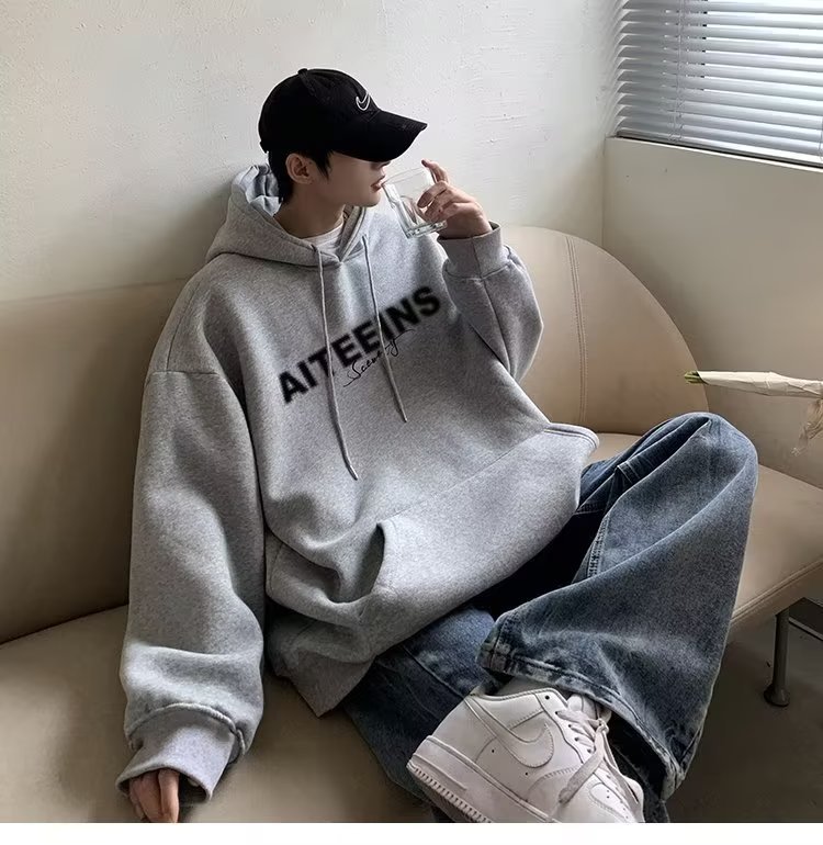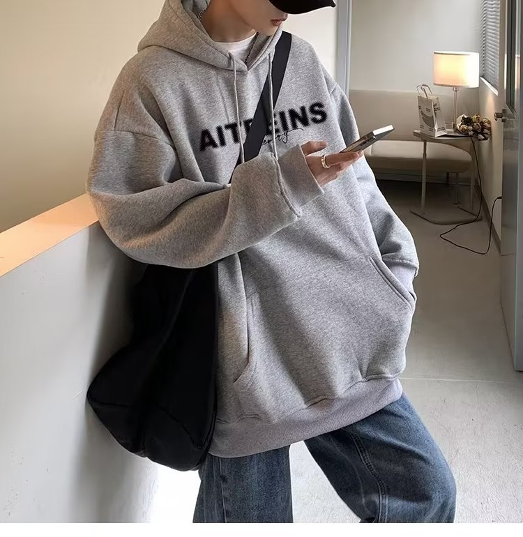트렌디 한 새로운 후드 스웨터 남자의 봄과 가을 미국 스타일 기모 긴 소매 재킷 한국 스타일 트렌디 한 커플의 모든 매치 탑스토어 가기