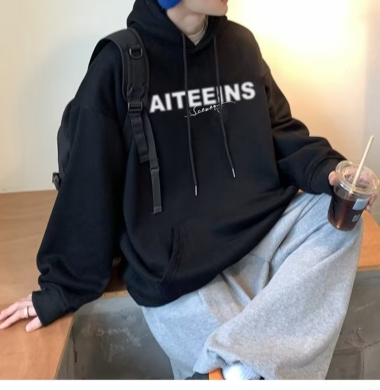 트렌디 한 새로운 후드 스웨터 남자의 봄과 가을 미국 스타일 기모 긴 소매 재킷 한국 스타일 트렌디 한 커플의 모든 매치 탑