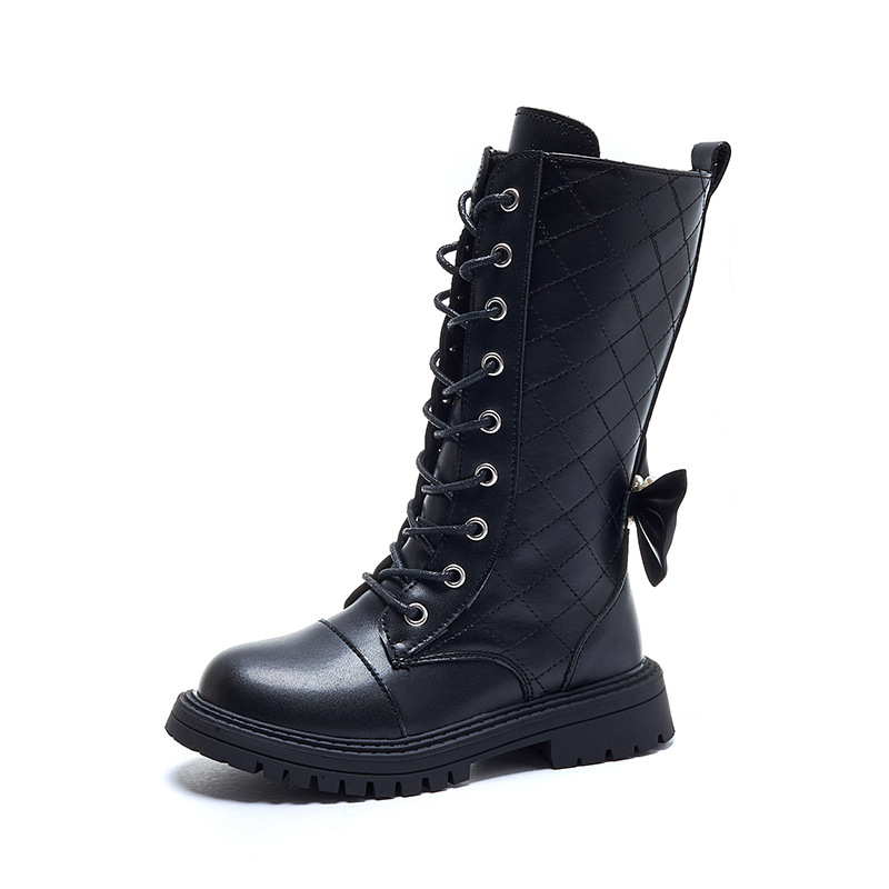 여아용 부드러운 밑창 마틴 부츠 여아용 하이 부츠 2025 가을 겨울 새로운 스타일 중형 및 대형 아동용 작은 향기로운 검은색 싱글 가죽 부츠