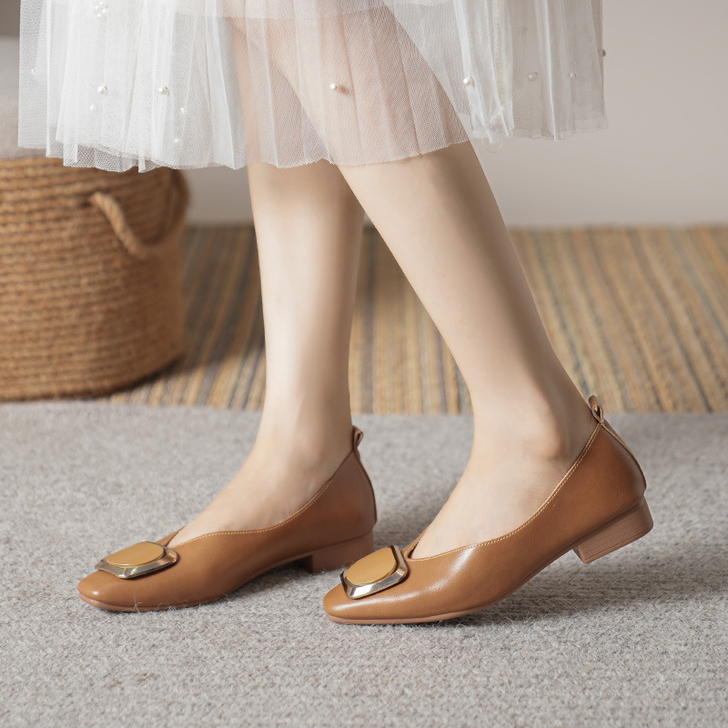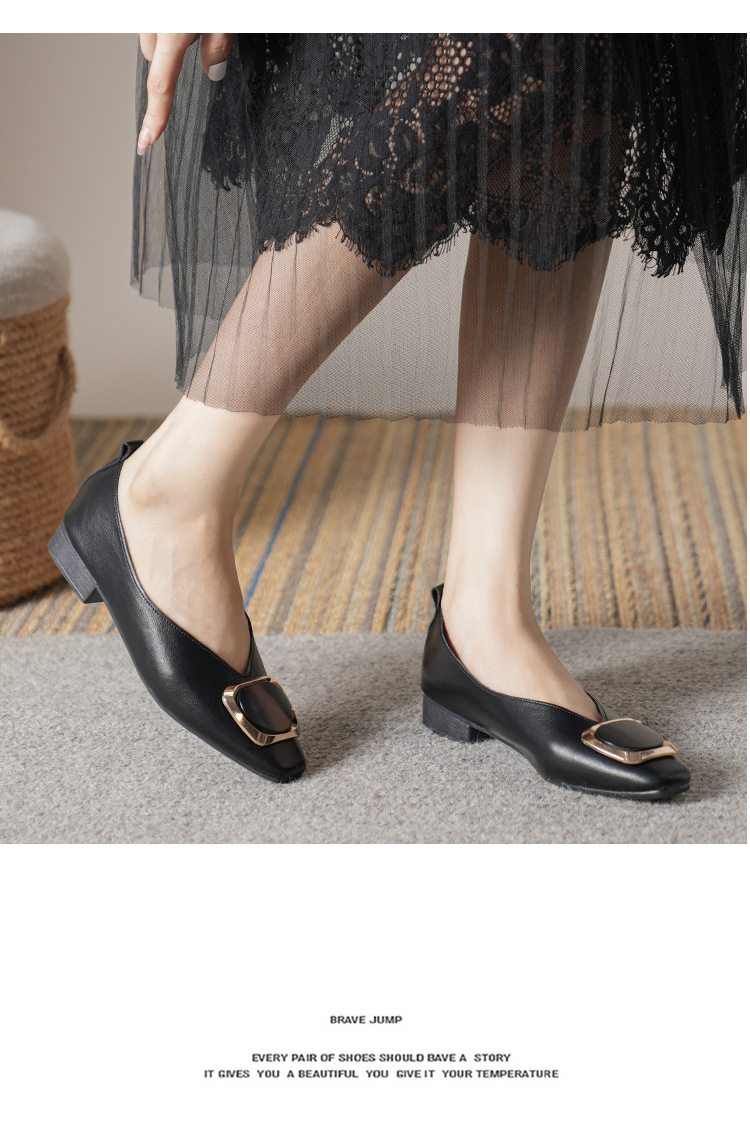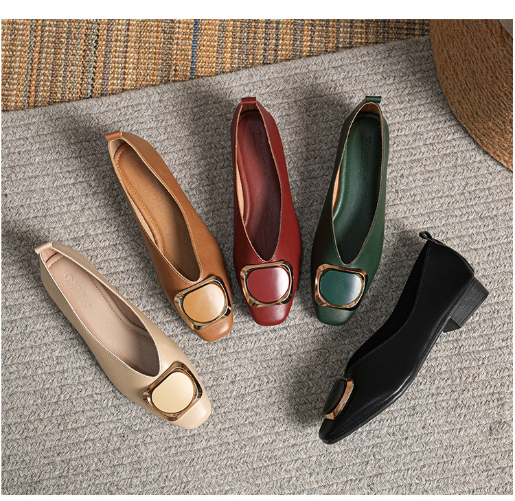 2023 봄 새로운 4 계절 신발 작은 사각형 두꺼운 뒤꿈치 우유 신발 플랫 낮은 입 낮은 굽 신발 여성 플러스 사이즈 여성 신발스토어 가기