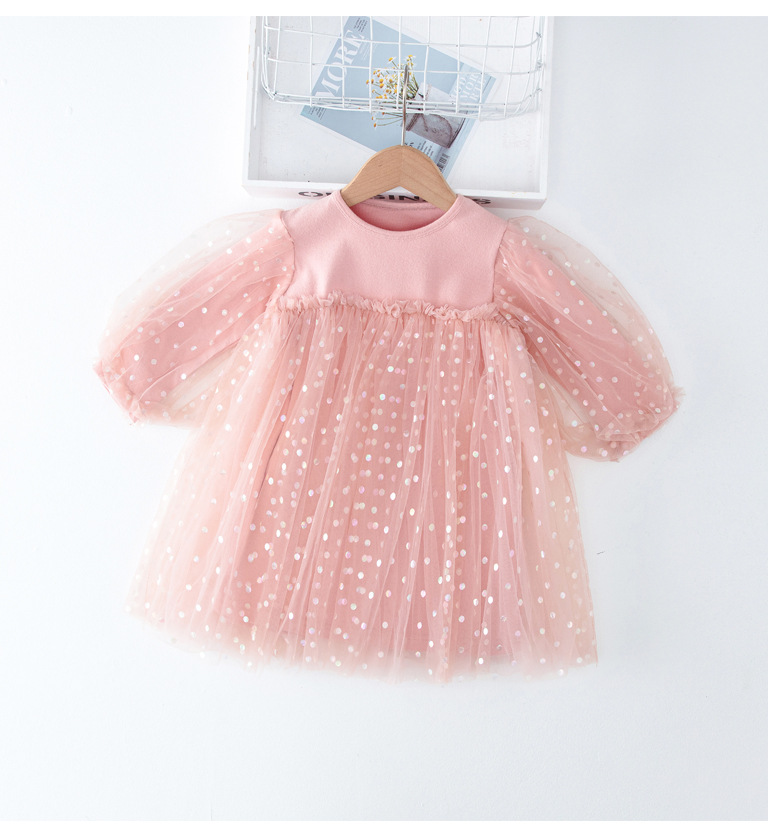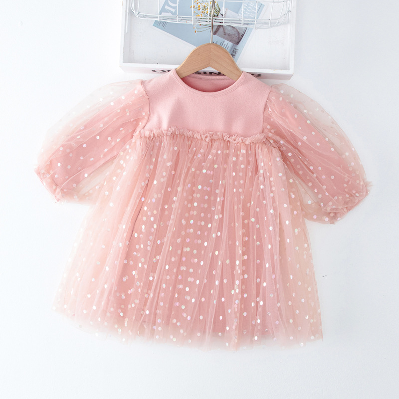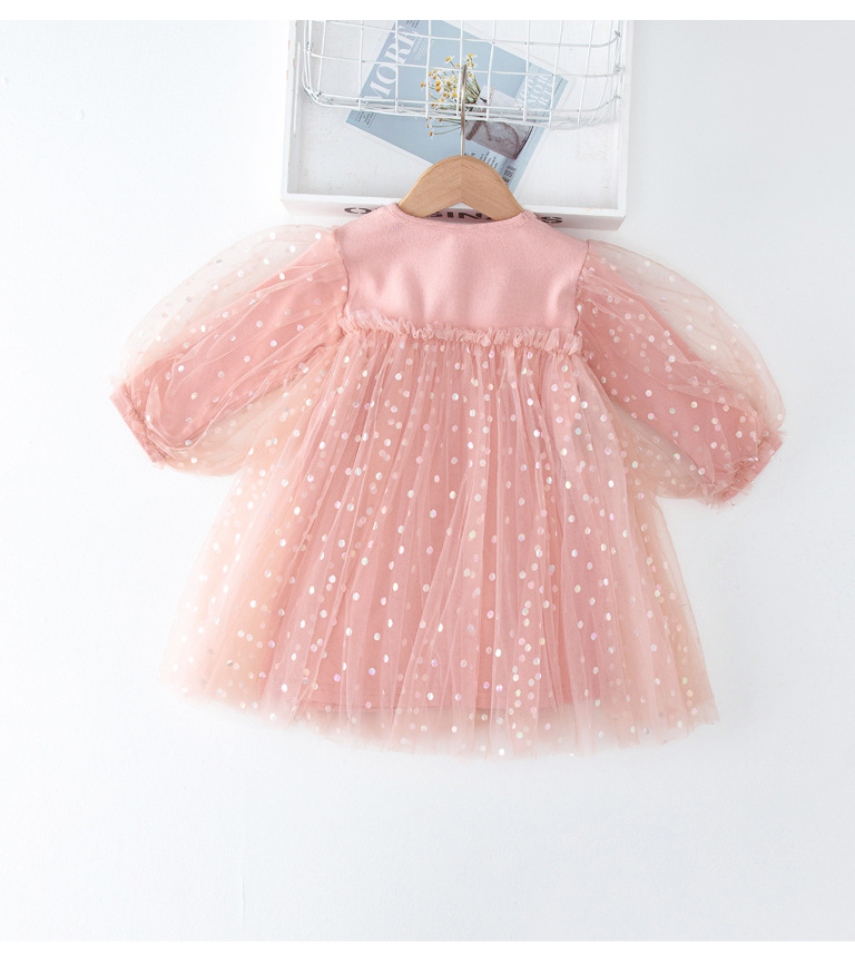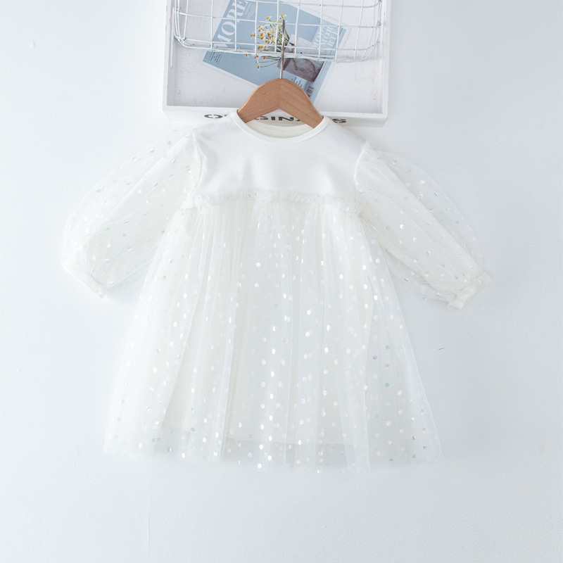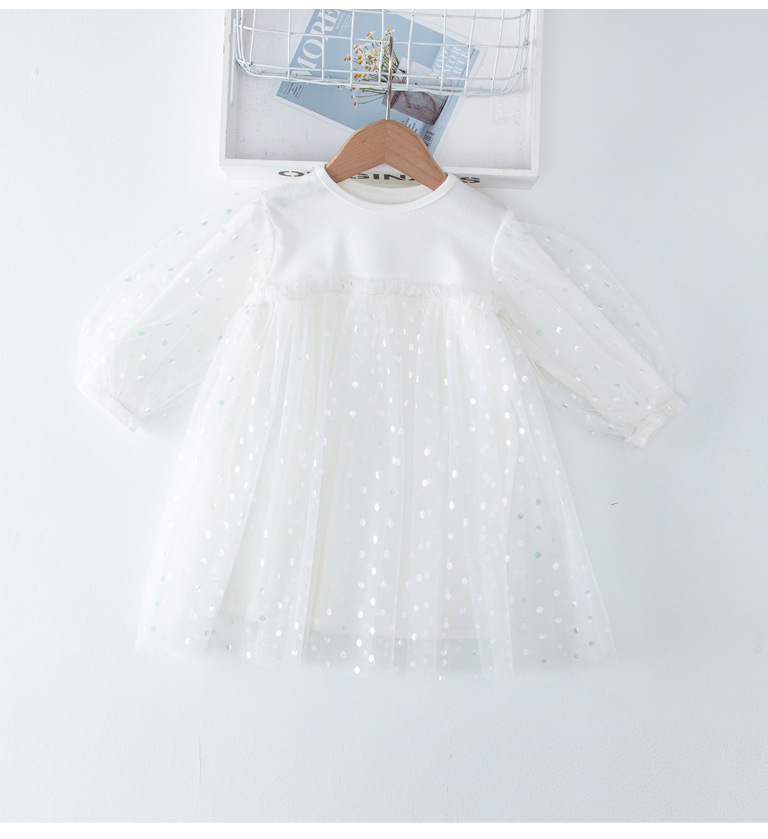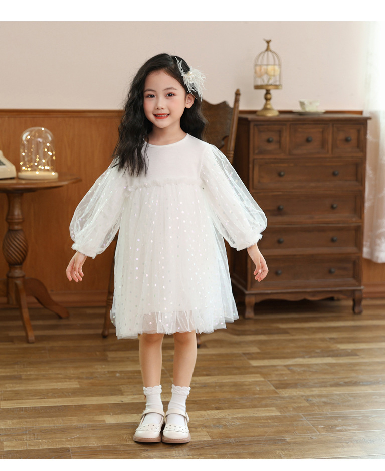 여아 원피스 봄과 가을 2023 한국 스타일 어린이 긴팔 순면 세련된 메쉬 공주 원피스 아기 여아 퍼프 원피스