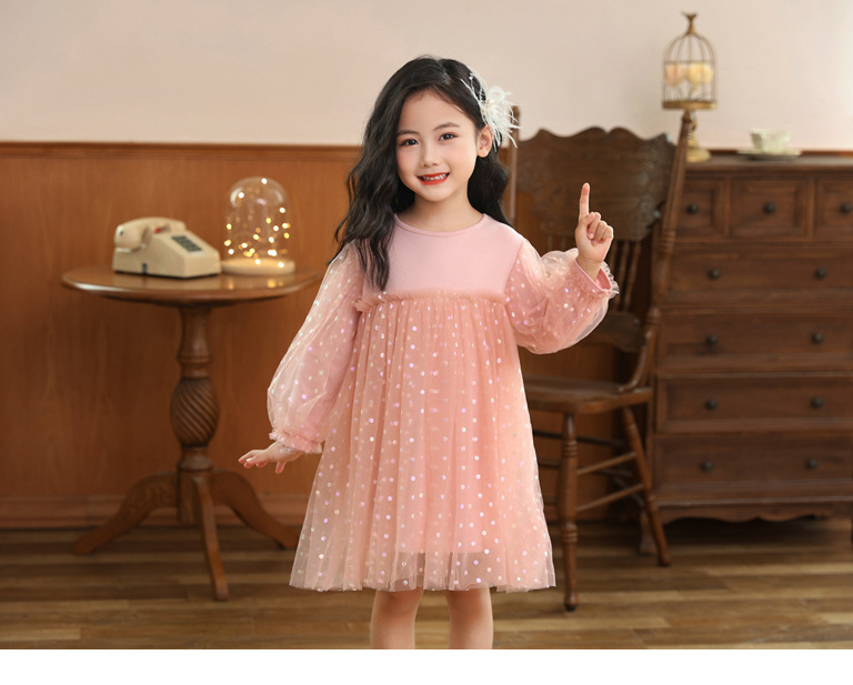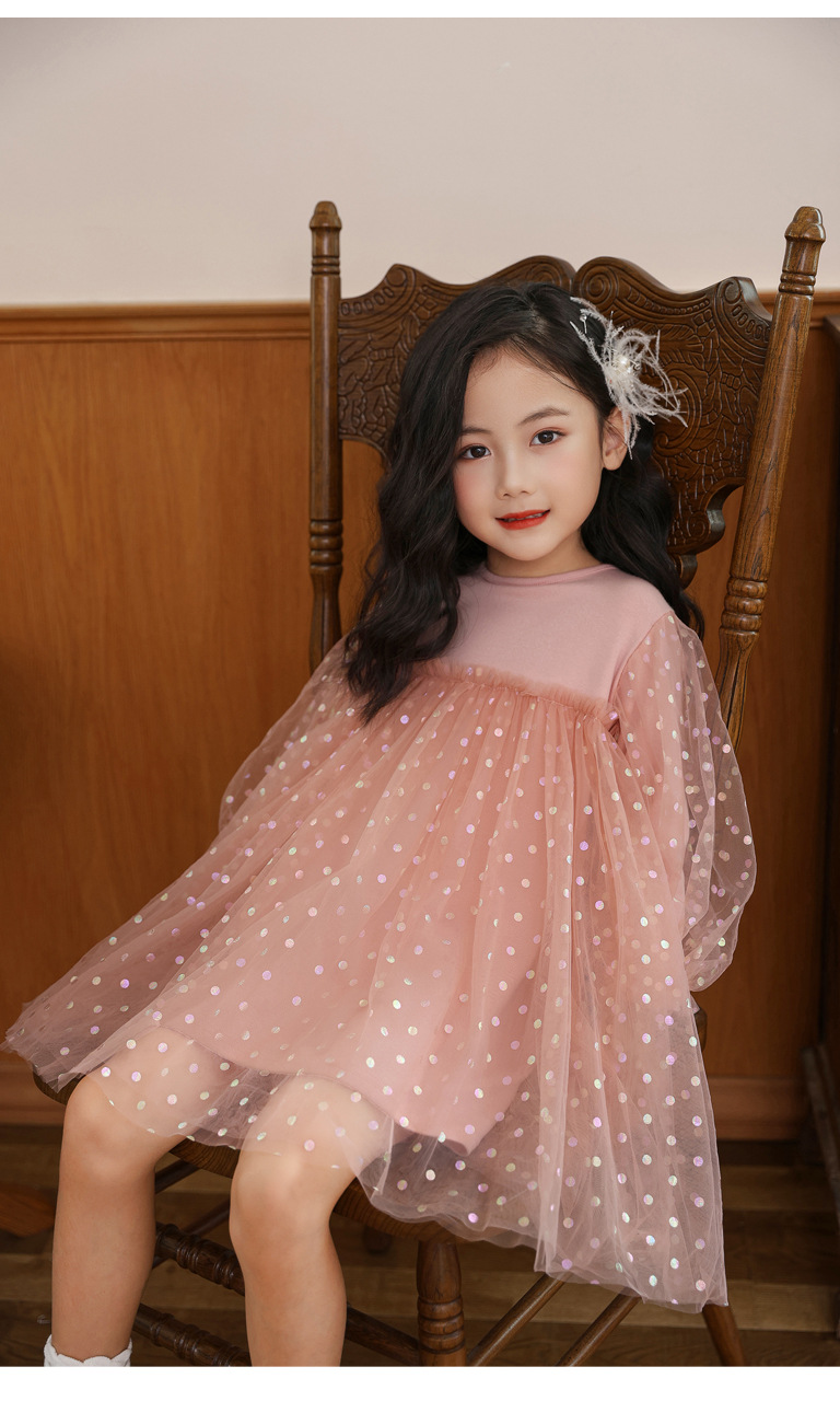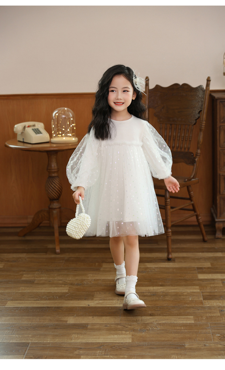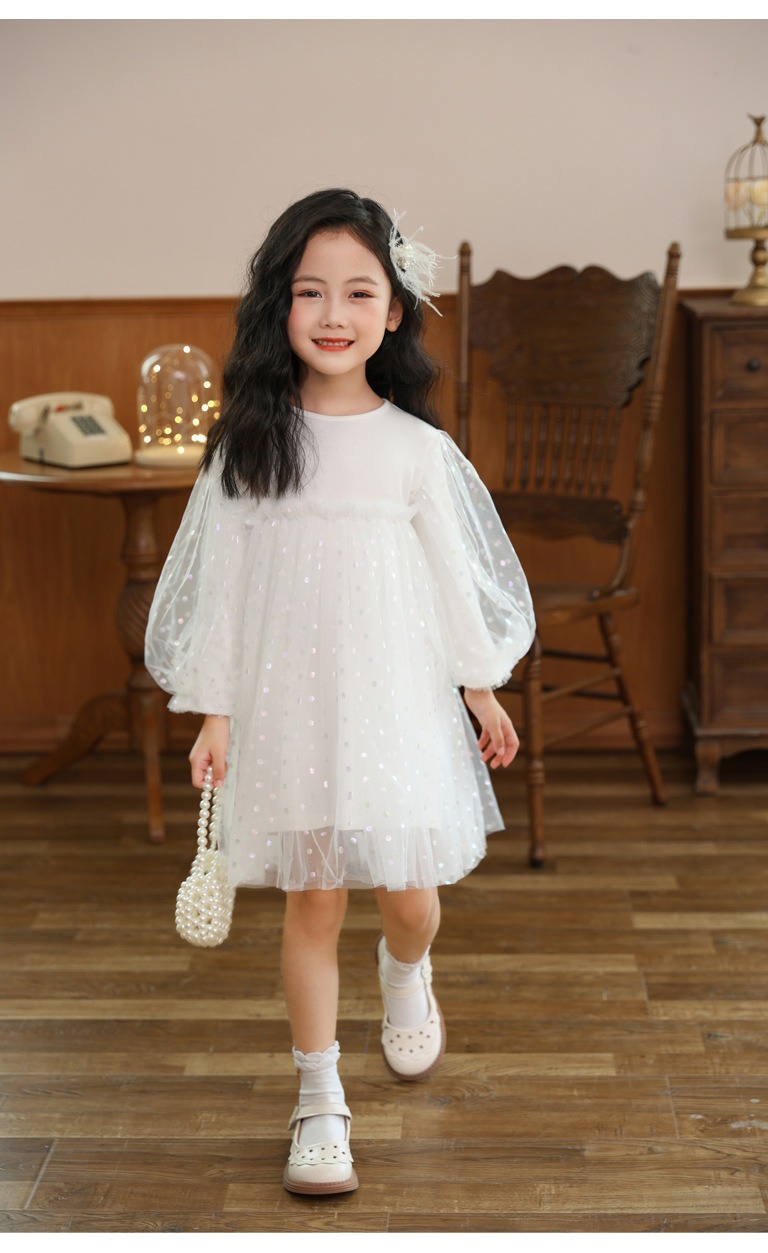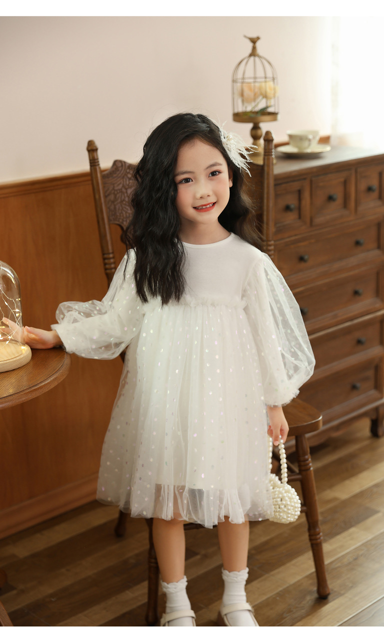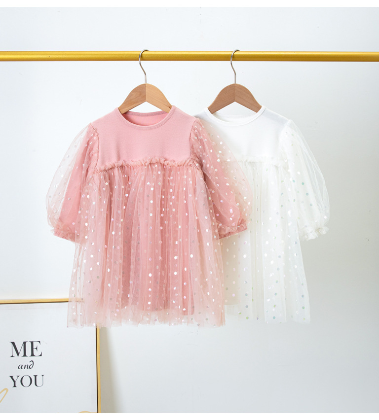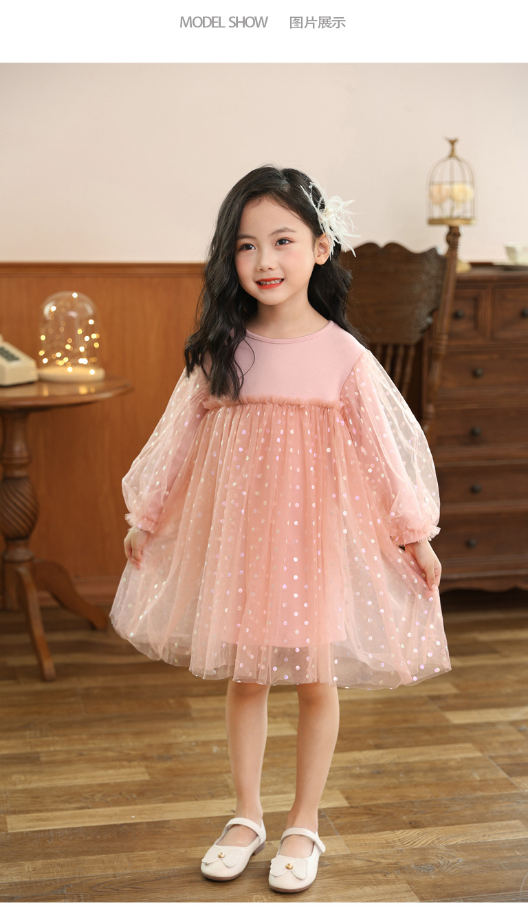 여아 원피스 봄과 가을 2023 한국 스타일 어린이 긴팔 순면 세련된 메쉬 공주 원피스 아기 여아 퍼프 원피스스토어 가기
