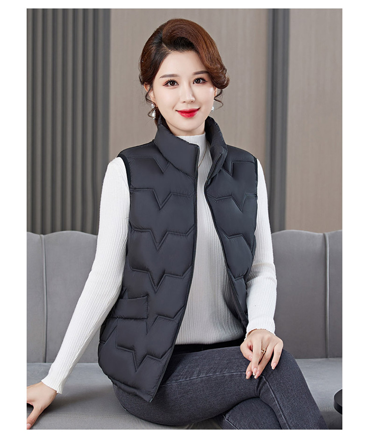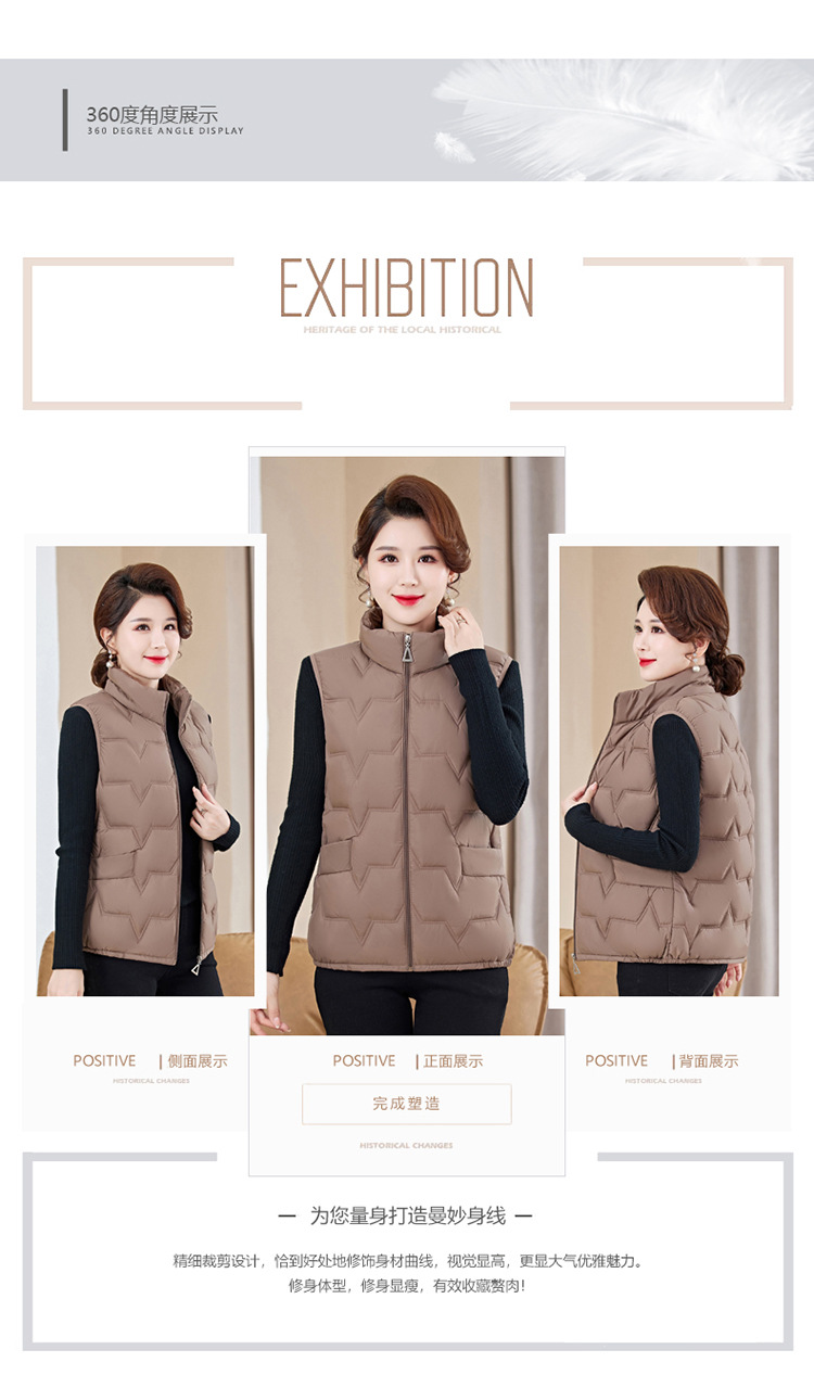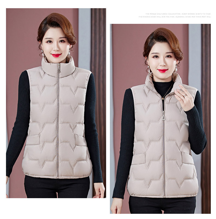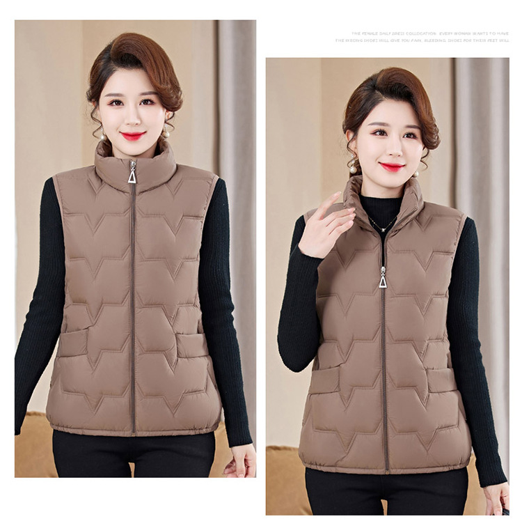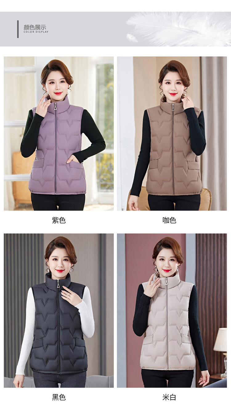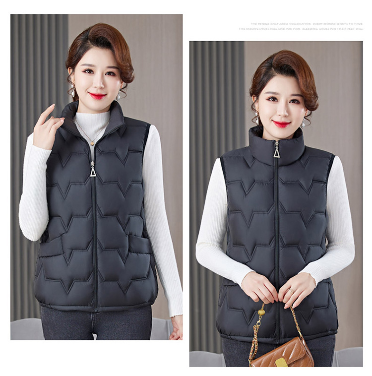 여성용 숏 다운 조끼, 가을 겨울 스탠드 칼라 코트, 엄마용 조끼, 방한 슬림핏 보온스토어 가기