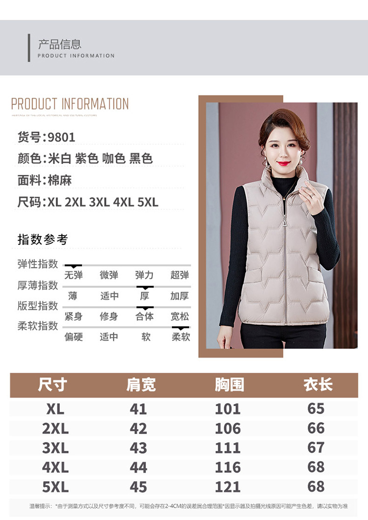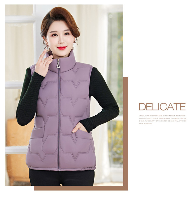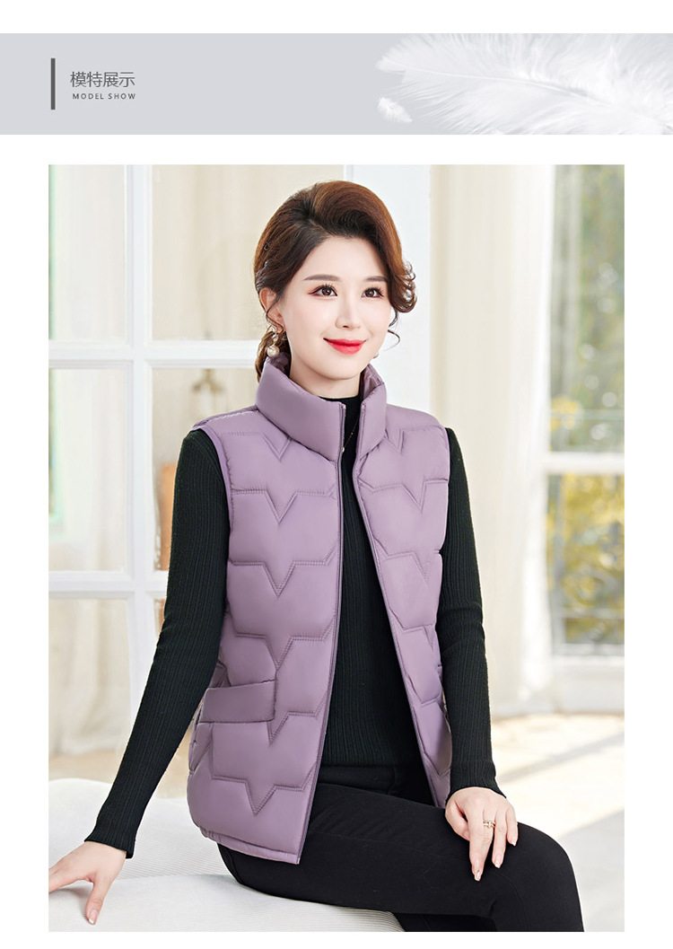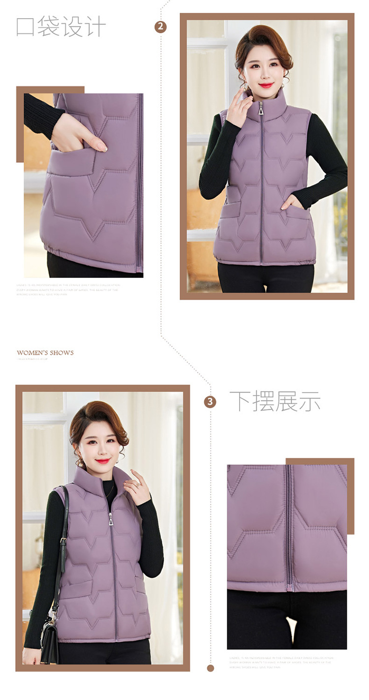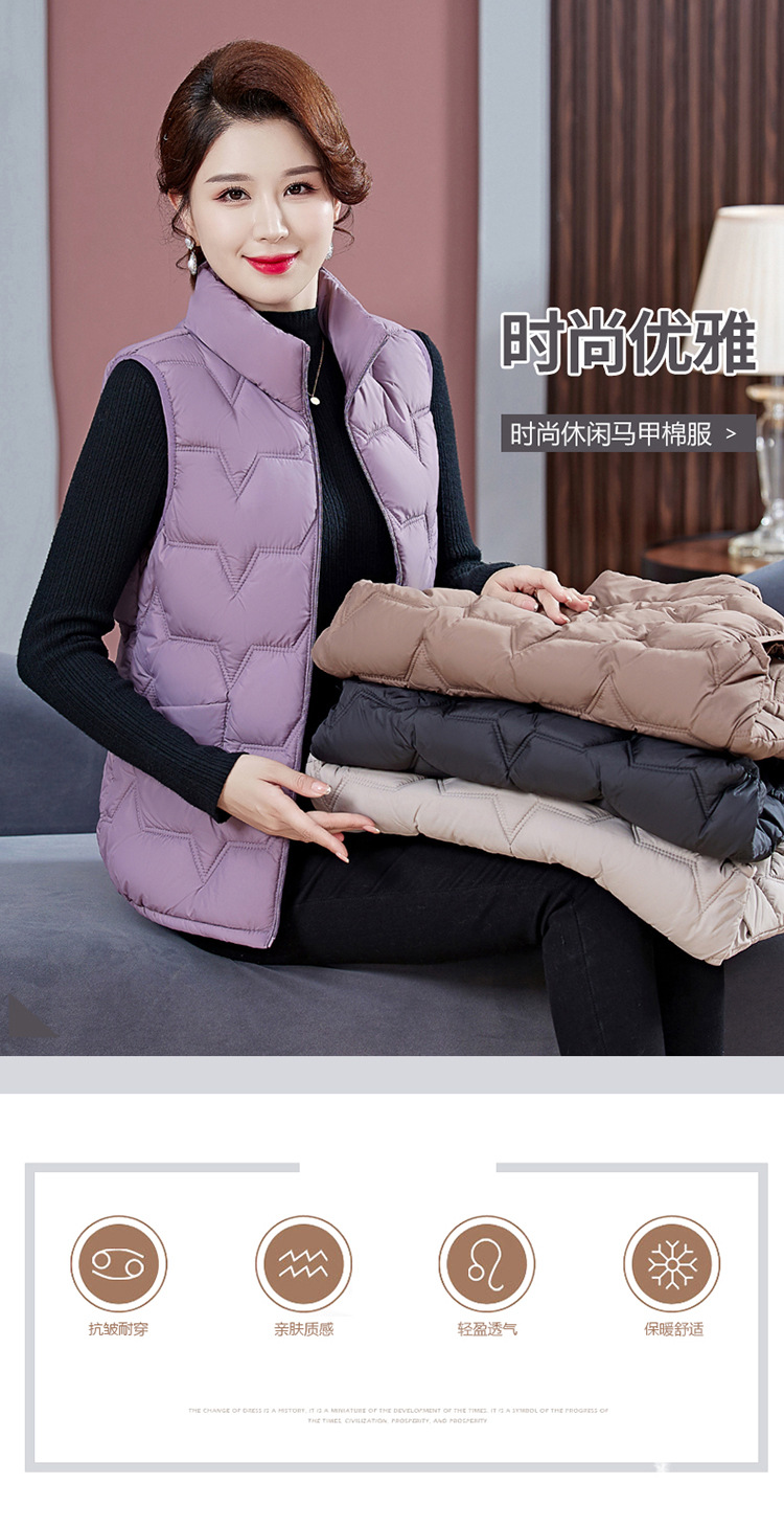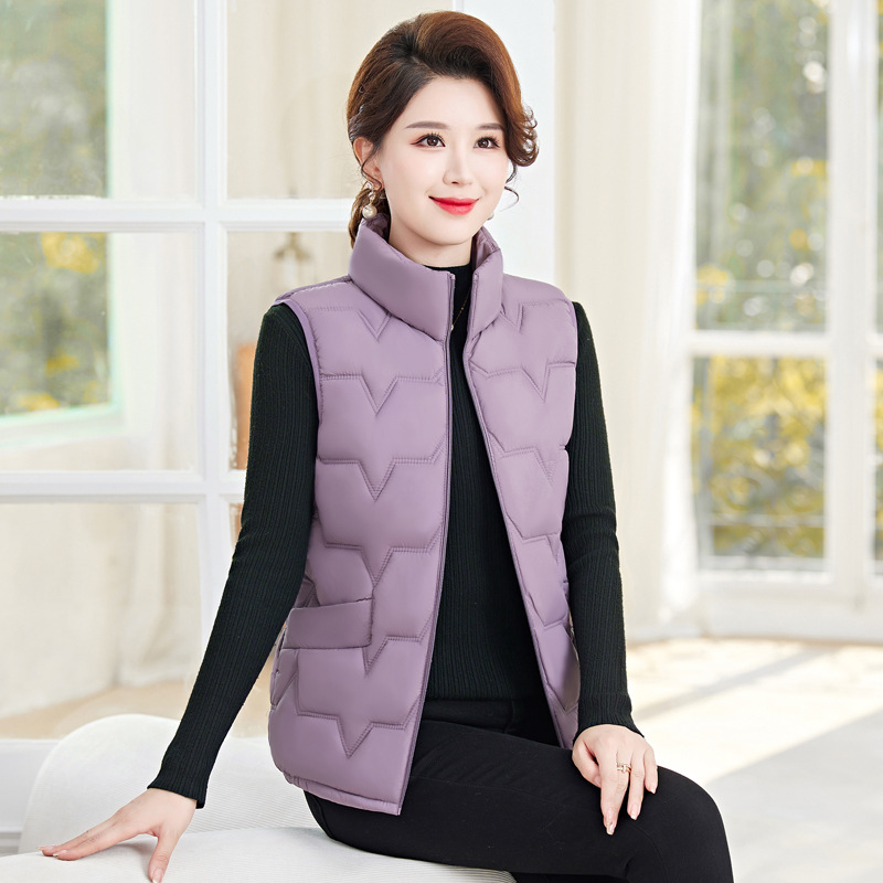 여성용 숏 다운 조끼, 가을 겨울 스탠드 칼라 코트, 엄마용 조끼, 방한 슬림핏 보온스토어 가기